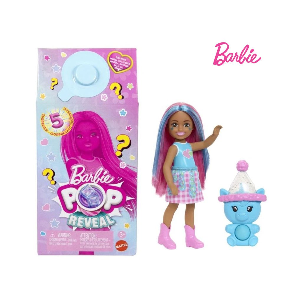 Bábiky Barbie® Pop Reveal™ Chelsea™ koktailové prekvapenie poteší deti zábavnou zvieracou párty témou, rozbaľovacími prekvapeniami a zmyslovou hrou! V sete nájdete malú bábiku Chelsea™, mini zvieratko, módne doplnky a hravé zmeny farieb.