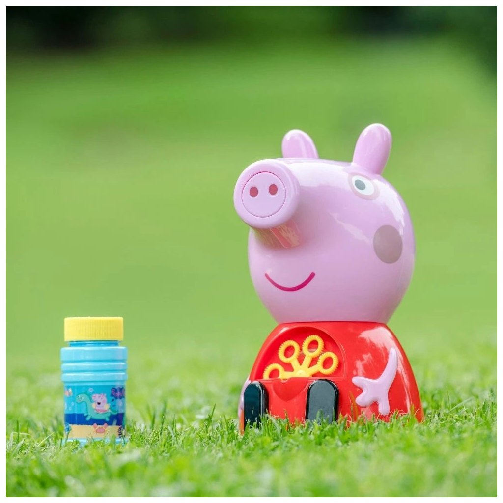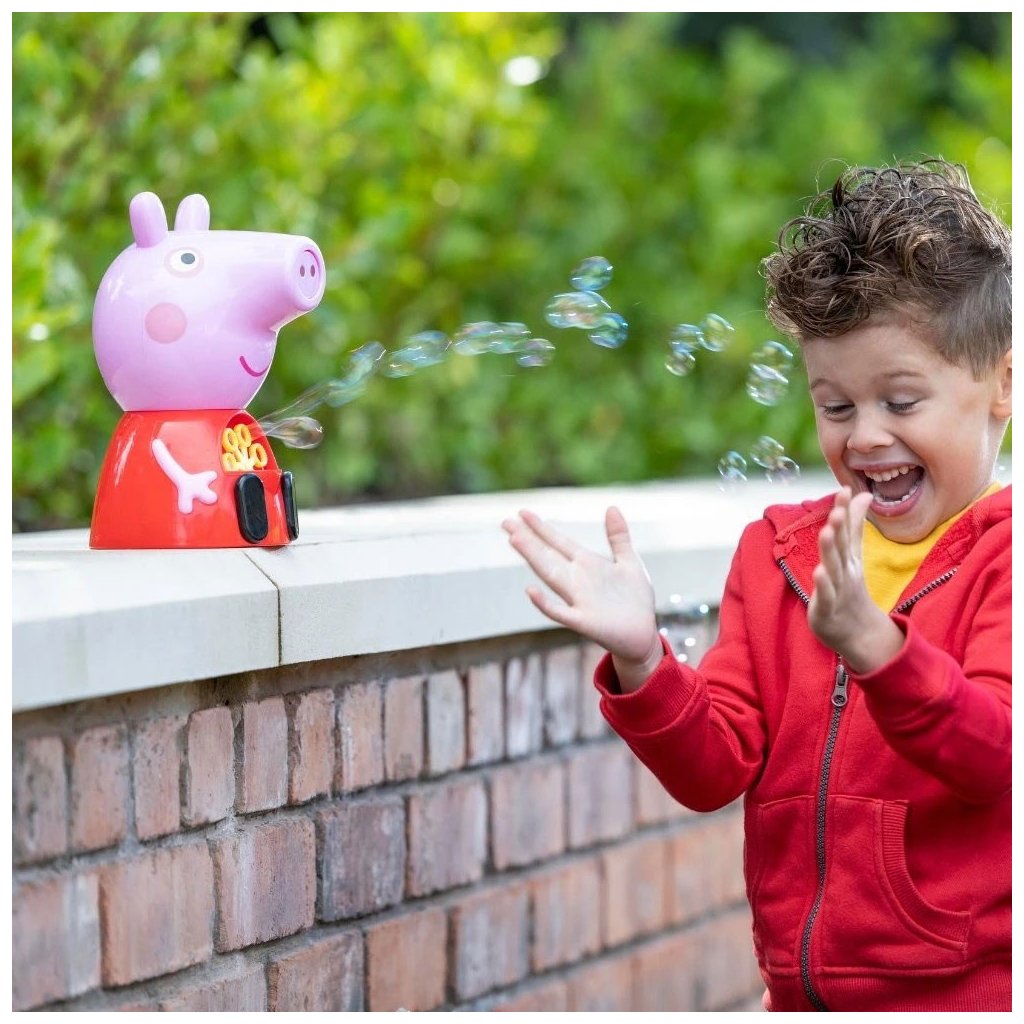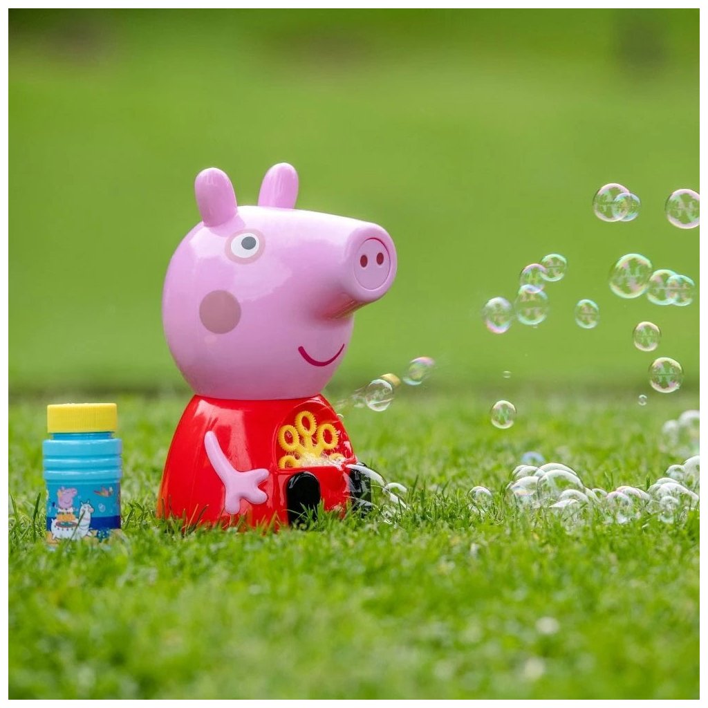 Nestačí ti jedna bublina? S týmto skvelým strojom na bubliny môžeš vytvárať množstvo veselých bublín! Parádny bublifukovač Prasiatko Peppa je veľký 21 centimetrov a balenie obsahuje aj 118 ml roztoku. Stroj na bubliny funguje na batérie – konkrétne na 3 AA batérie.