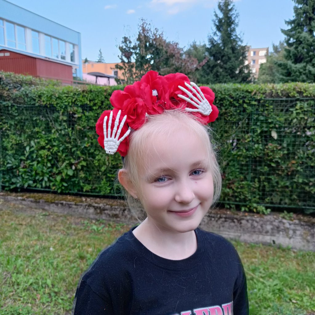 Náš nový produkt - Čelenka Halloween - je pripravená oživiť vašu Halloweensku atmosféru ako nikdy predtým! Jedná sa o krásnu čelenku zdobenú neprehliadnuteľnými ružami a lebkou s rukami, ktorá v sebe snúbi pôvab a zábavný strašidelný nádych.
