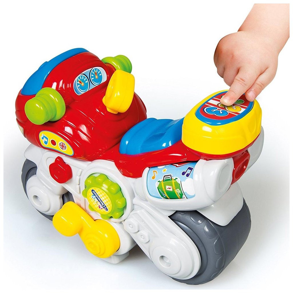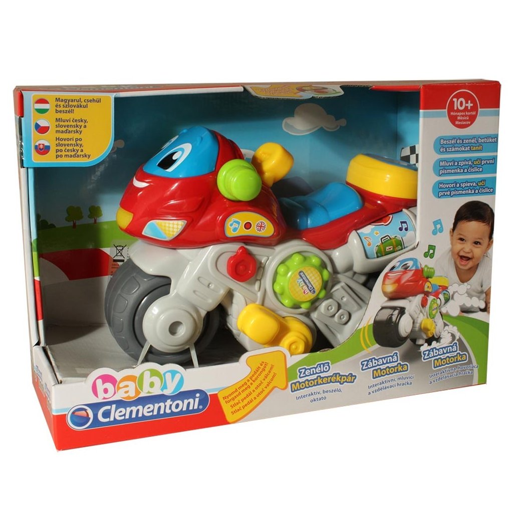 Veselý, vzdelávací motocykel, ktorý hovorí, spieva a učí čísla a prvé písmená abecedy. Stimuluje motorické zručnosti, vizuálne vnímanie, sluch a pomáha rozvíjať pochopenie príčin a následkov. Je vybavený LED svetlom, mnohými mechanickými a interaktívnymi prvkami. Motorka hovorí slovensky, česky a maďarsky. Pomocou prepínača je možné nastaviť jazyk výrobku na slovenčinu alebo angličtinu.
