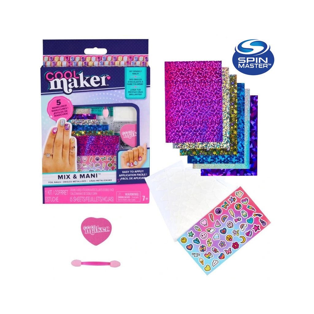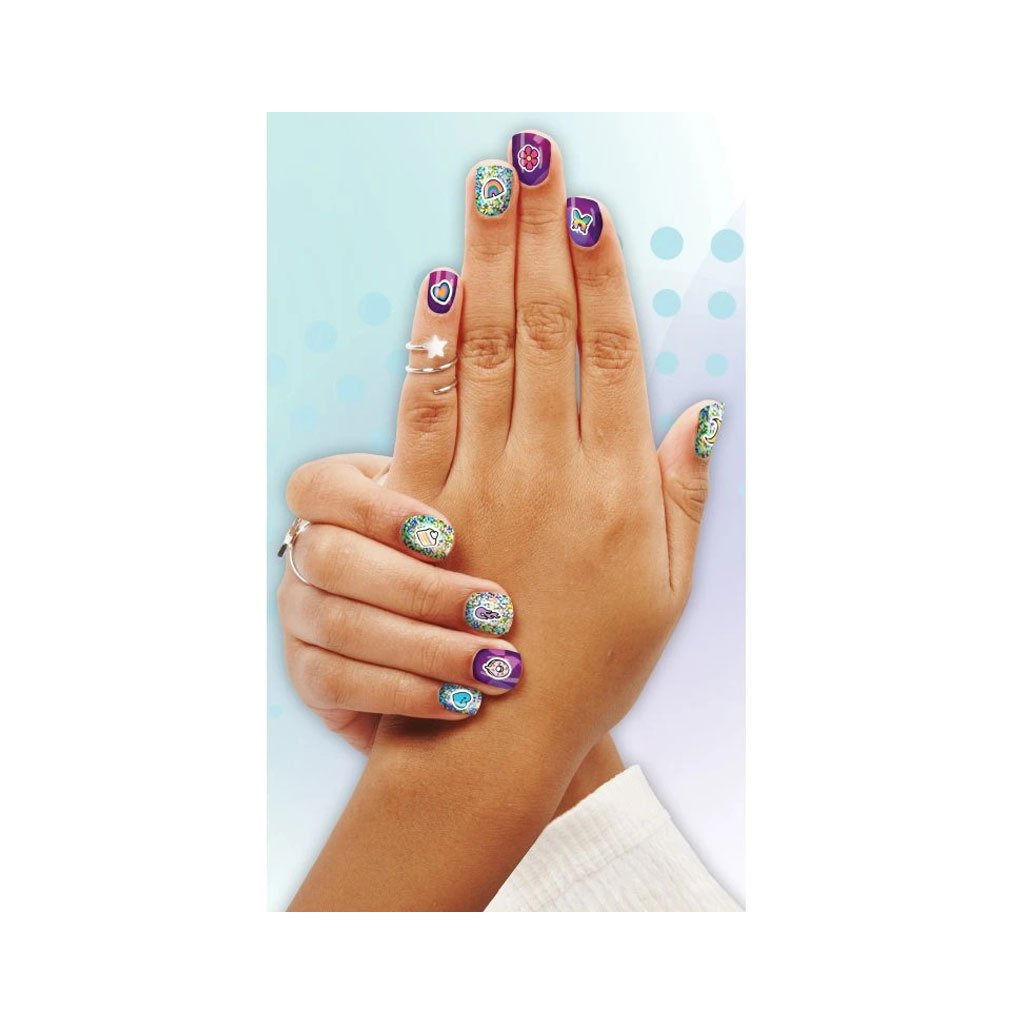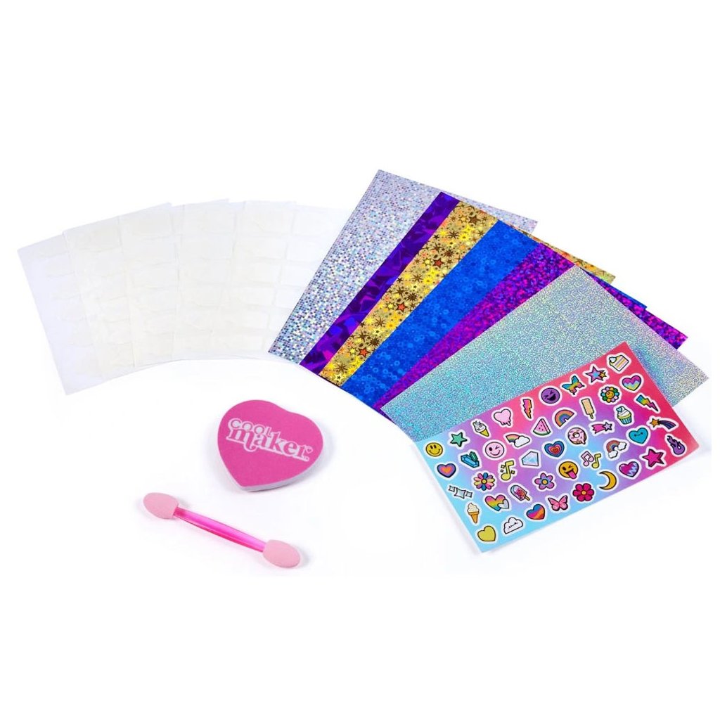 Sada doplnkov na zdobenie nechtov Cool Maker je ideálna pre kreatívne dievčatá.Stačí umiestniť šablónu s lepidlom, aplikovať vzor a nalepiť nálepku a je to! Ak vás vzor omrzí, stačí odlepiť lepidlo a hrať znova.