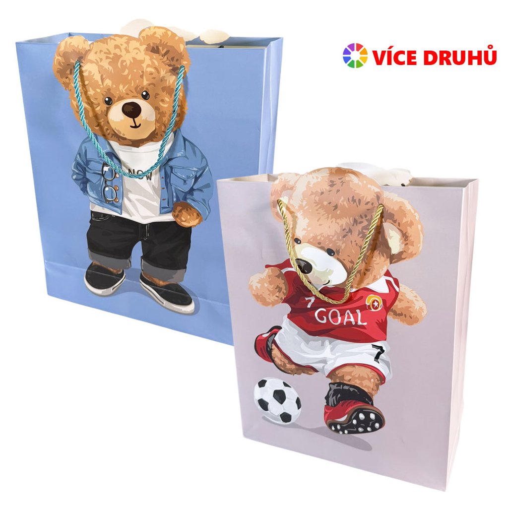 Potešte deti, rodinu alebo priateľov pekným darčekom ukrytým do darčekovej papierovej tašky s krásnym motívom. Taška je vyrobená z veľmi pevného papiera, má vystužené dno, ušká zo stuhy o šírke 2 centimetre. Darčeková taška je s motívom medvedíka.