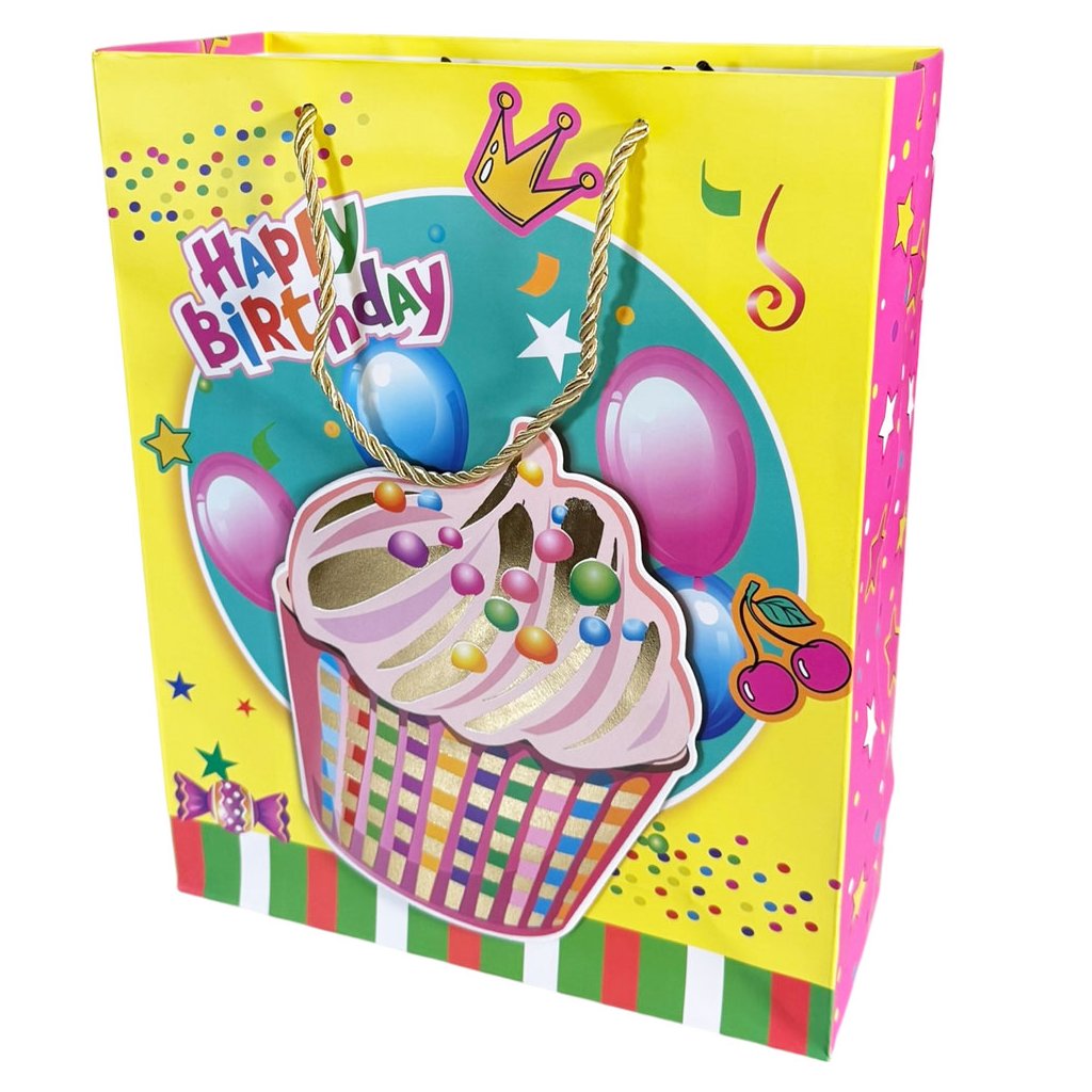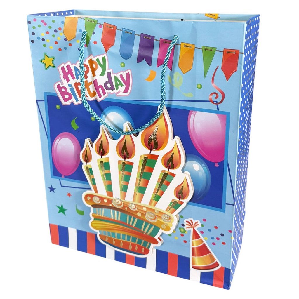 Darčeková taška veľká Happy Birthday s trblietkami (5777)