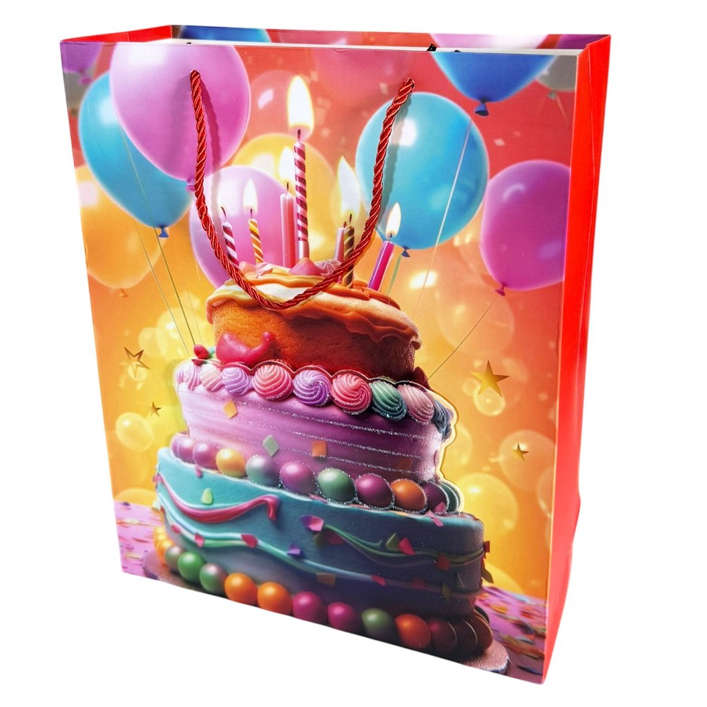 Darčeková taška veľká Happy Birthday s trblietkami (5852)
