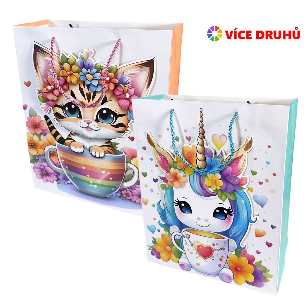 Potešte deti, rodinu alebo priateľov pekným darčekom ukrytým do darčekovej papierovej tašky s krásnym motívom. Taška je vyrobená z veľmi pevného papiera, má vystužené dno, ušká zo stuhy o šírke 2 centimetre.