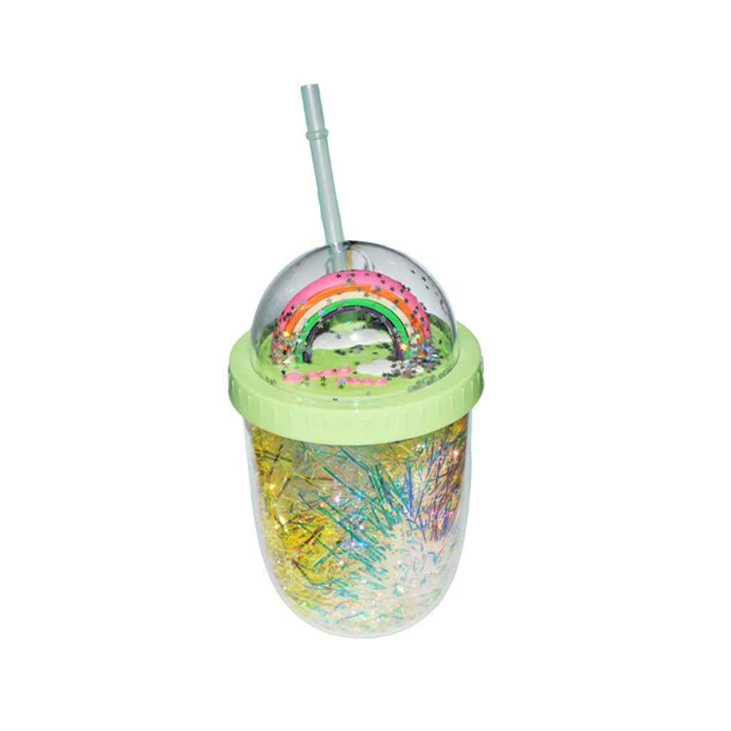 Detský kelímok na pitie s motívom dúhy a trblietkami zelený 3 (9705)