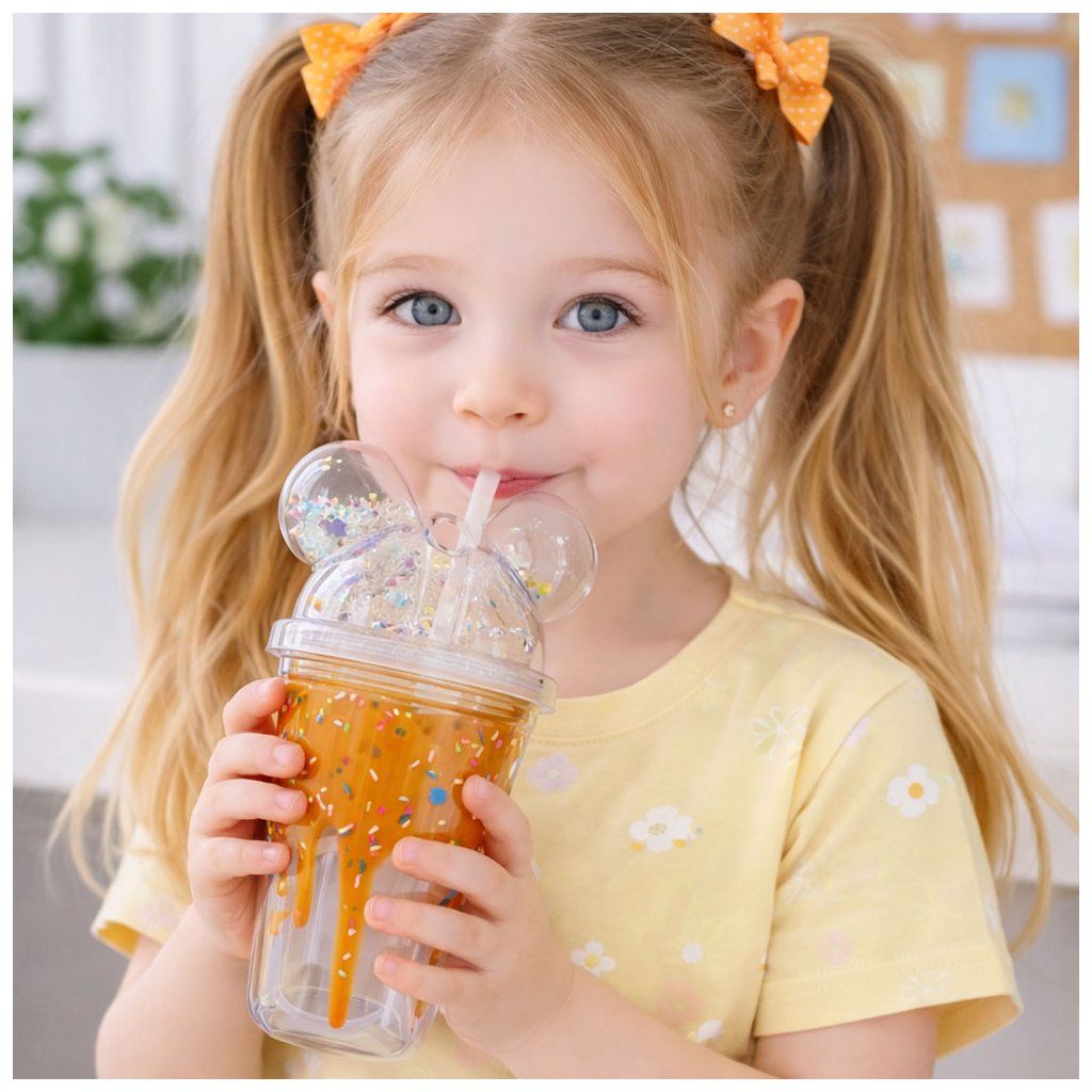 Detský kelímok na pitie s motívom Mickey a trblietkami oranžový 1 (9682)