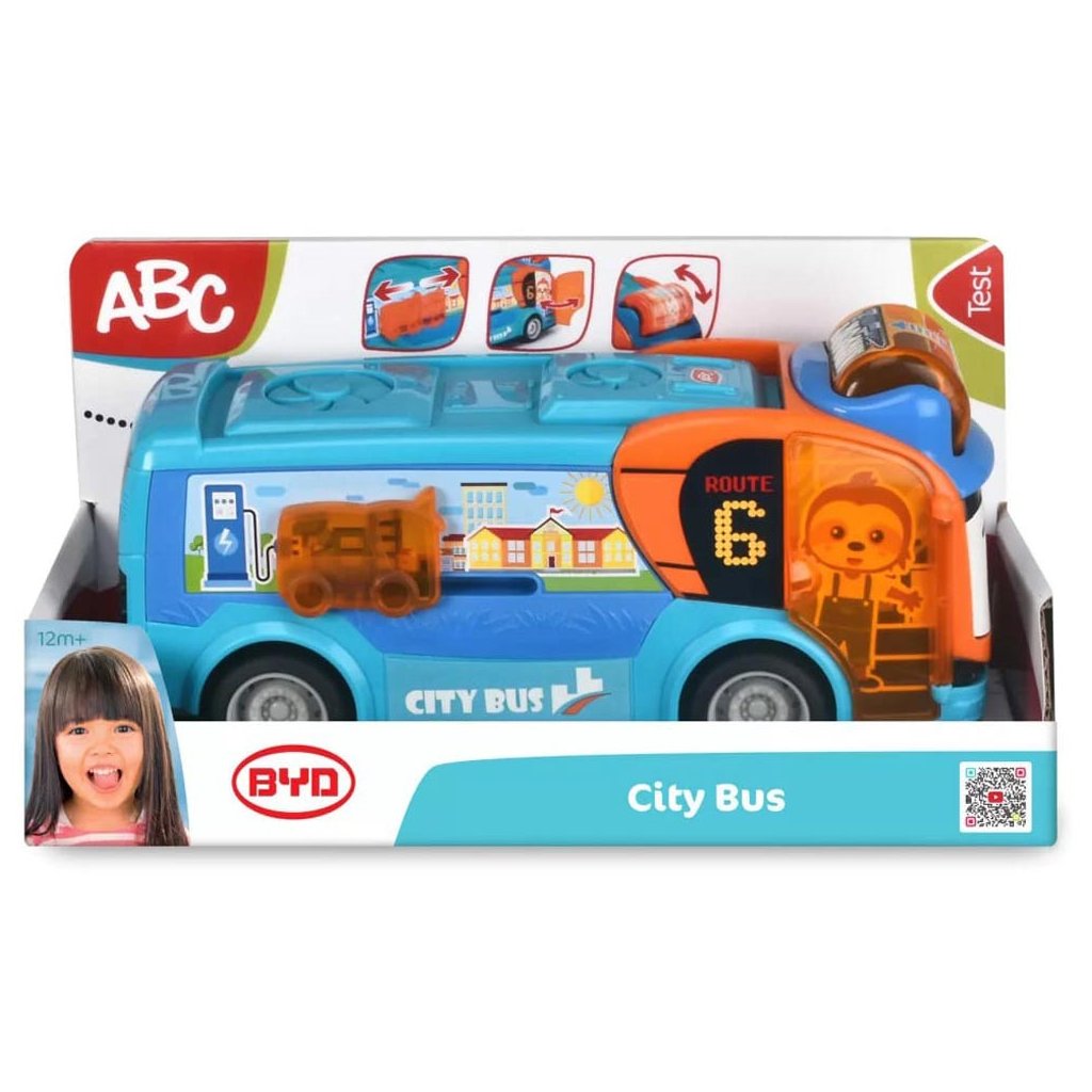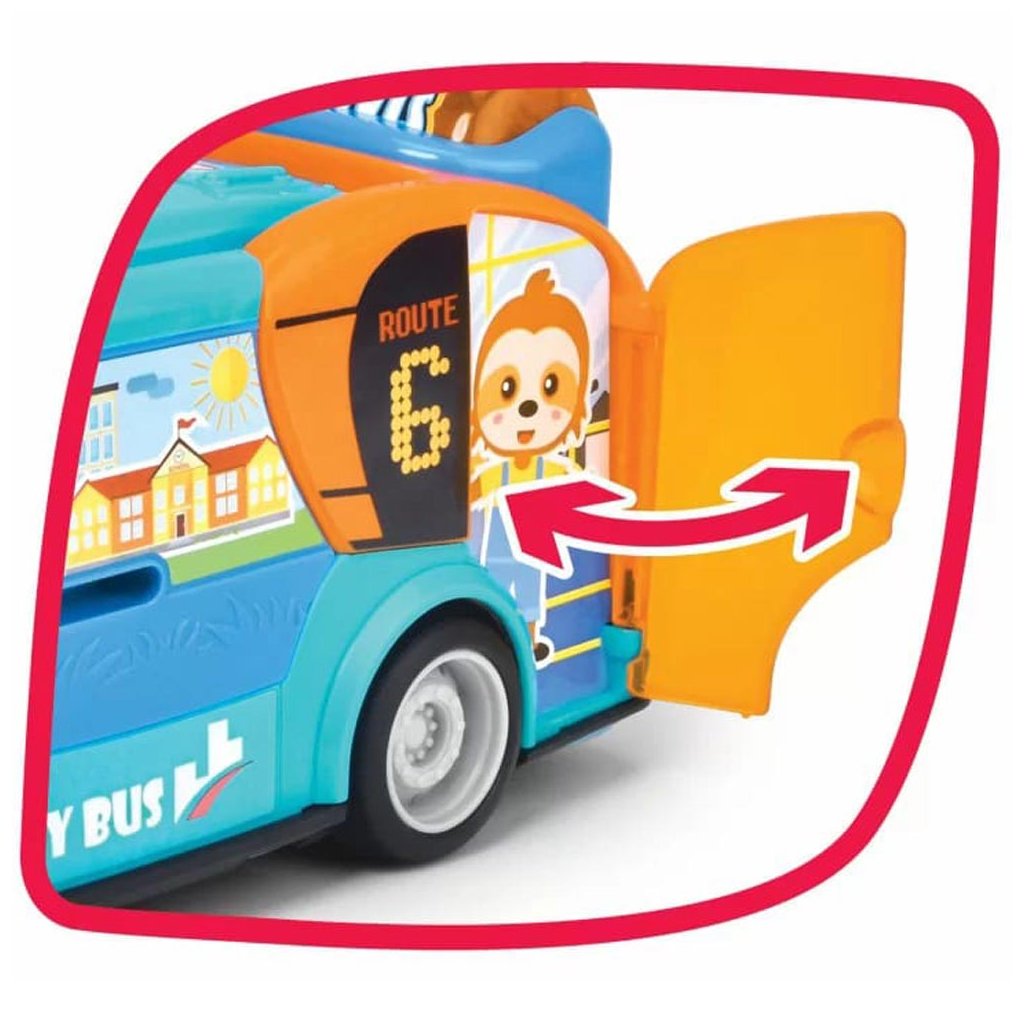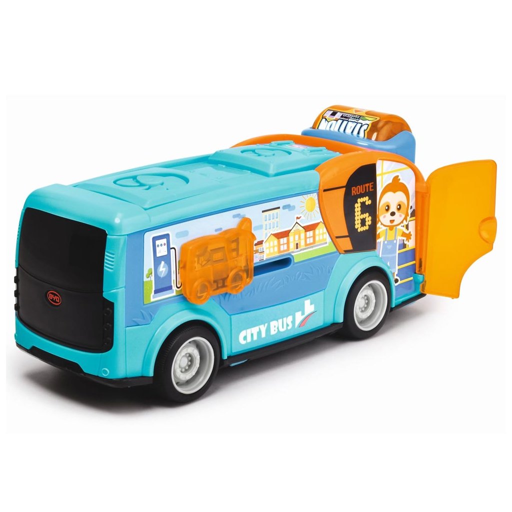 Autobus na voľnobeh, s otočným hrkálkou s cieľovou stanicou, s otváracími dverami a bočným pohyblivým prvkom.
