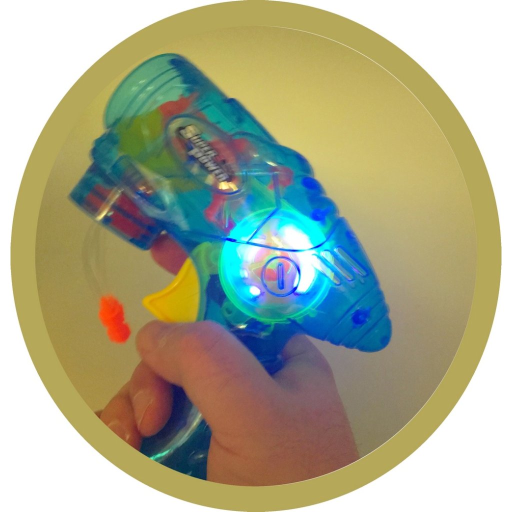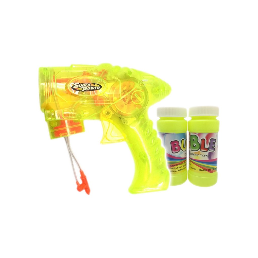 Každé dieťa miluje bublifuk. Bubliny sú ako čarovné balóniky, ktoré si dieťa môže vykúzliť a obdivovať ich dúhovú farbu. A teraz nemusíte fúkať! Stačí ponoriť pištoľku do bublifuku a stláčať spúšť. Pri stláčanie navyše roztočíte strojček ktorý vytvára super svetelný efekt. Je to veľmi vďačná hračka, ktoré vaše dieťa zabaví na veľmi dlho.