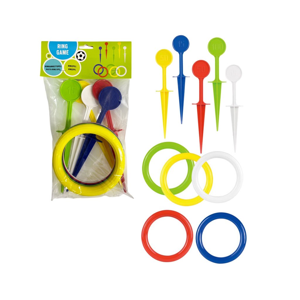 Hra hádzanie krúžkov - zábavná hra pre jedno i viac hráčov. Súprava obsahuje päť farebných tyčiek a päť krúžkov.