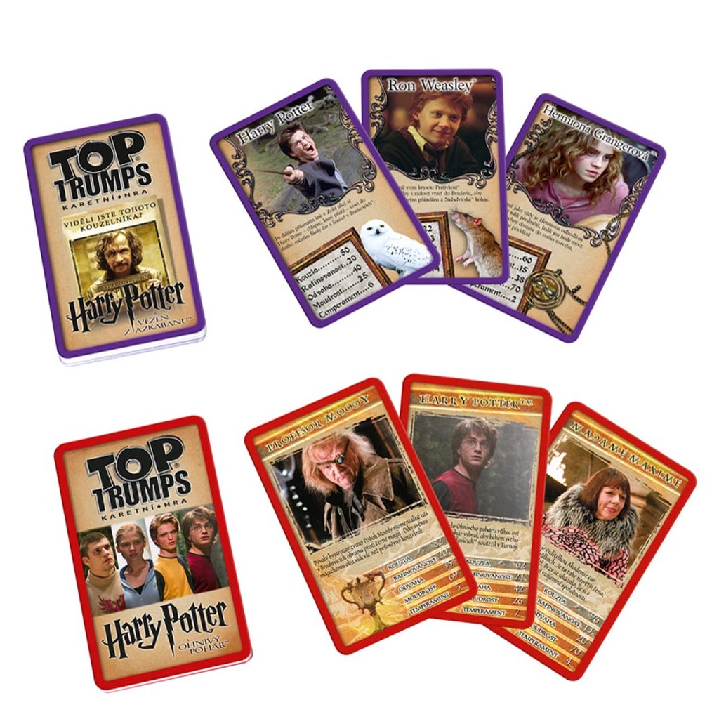 Kartová hra Top Trumps TIN Harry Potter Chrabromil Perfektná kartová hra pre každého fanúšika Harryho Pottera v zberateľskej edícii. Pozrite sa, ako dobre poznáte filmových hrdinov. Alebo sa o nich možno dozviete niečo nové? Hru môže hrať ľubovoľný počet ľudí, najmenej však dvaja. Top Trumps Battle má viac verzií a často je dodávaný s obľúbenými licenciami.
