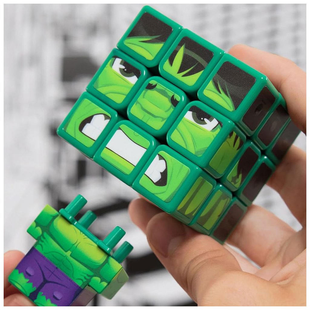 Kocka je vyrobená z plastu a má obrázky, ktoré sa spájajú do podoby Hulka. Okrem kocky sada obsahuje aj možnosť premeniť kocku na figúrku s podstavcom.