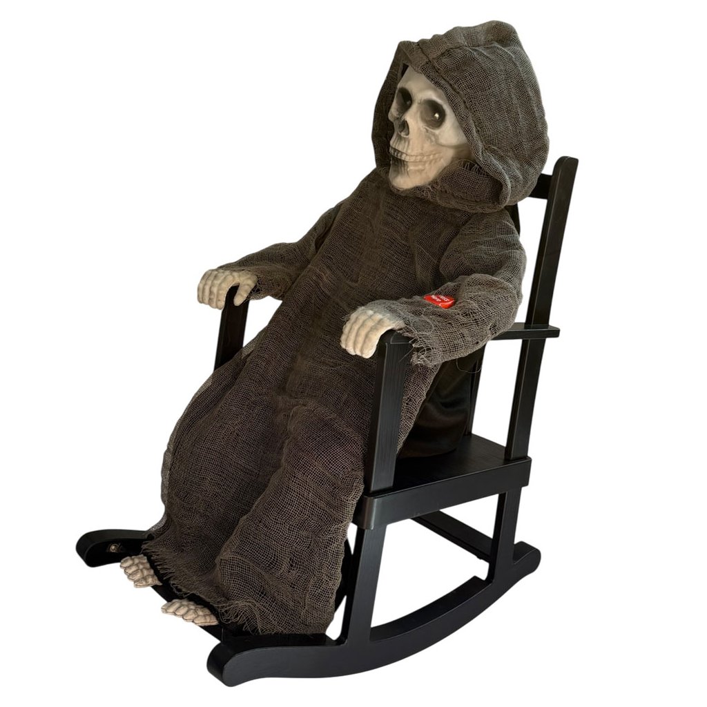Hrôzu naháňajúca halloweenska dekorácia v podobe hojdajúcej sa kostry so svetelnými a zvukovými efektmi. Kostlivec v kapucni sedí na hojdacom kresle a po zapnutí a stlačení tlačidla hovorí a vydáva zvuky. Kostro navyše svieti oči a hojdacie kreslo aj kostra sa pohybujú. Celý set je vysoký 42 centimetrov.