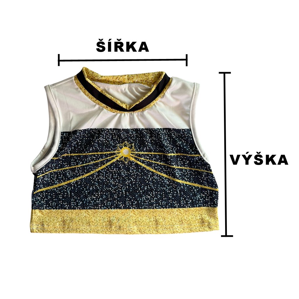 Veľkosť S: Top šírka 25, výška 26 | Bunda šírka 29, výška 30 | Sukne šírka 25, výška 32