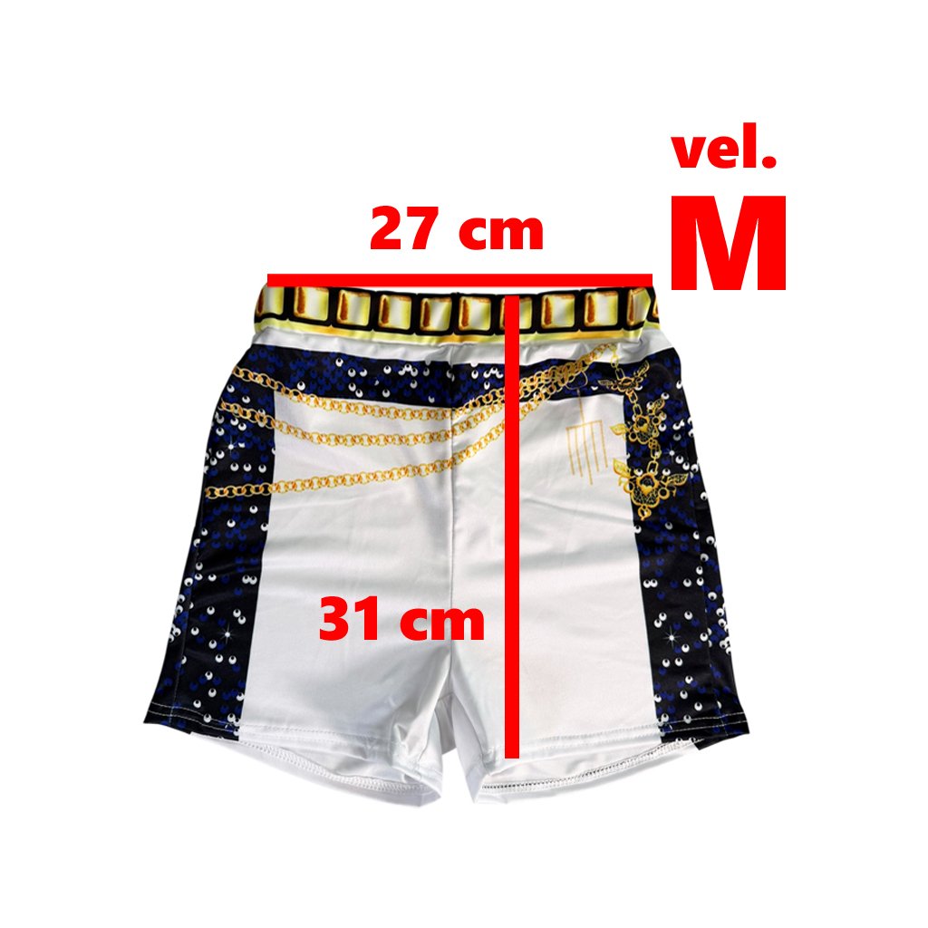 Veľkosť M: Top šírka 37, výška 31 | Bunda šírka 38, výška 34 | Kraťasy šírka 27, výška 31