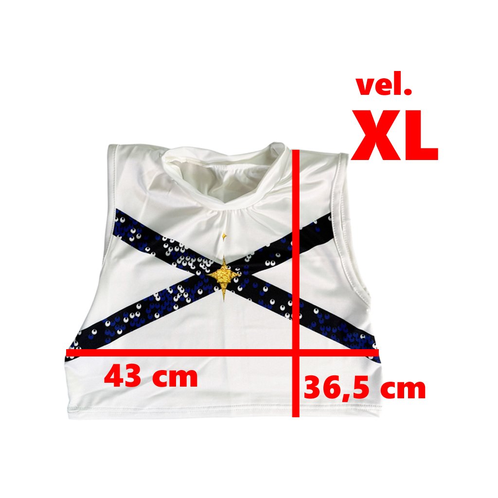 Veľkosť XL: Top šírka 43, výška 36,5 | Bunda šírka 46, výška 36 | Kraťasy šírka 29, výška 33