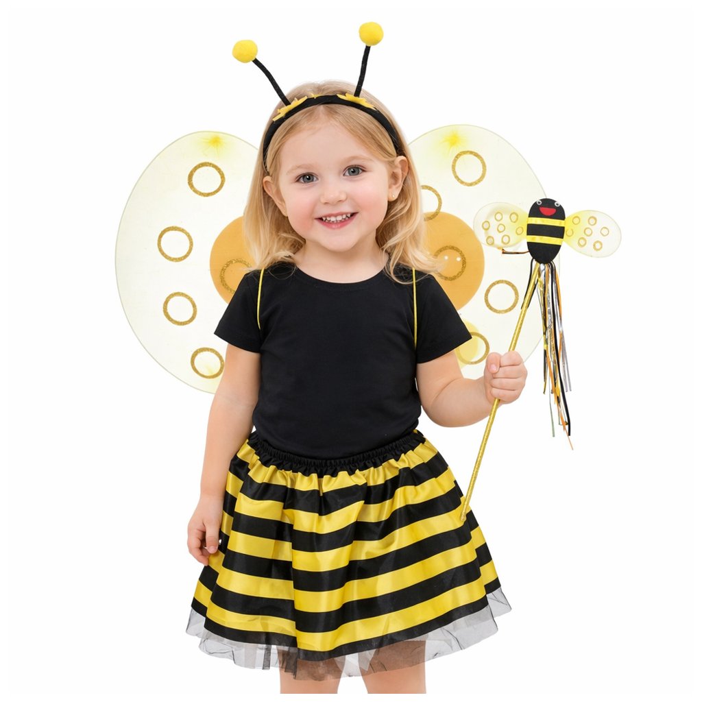 Krásny karnevalový set včela obsahuje sukňu, krídla, prútik a čelenku.Dĺžka sukne je 30 cm
