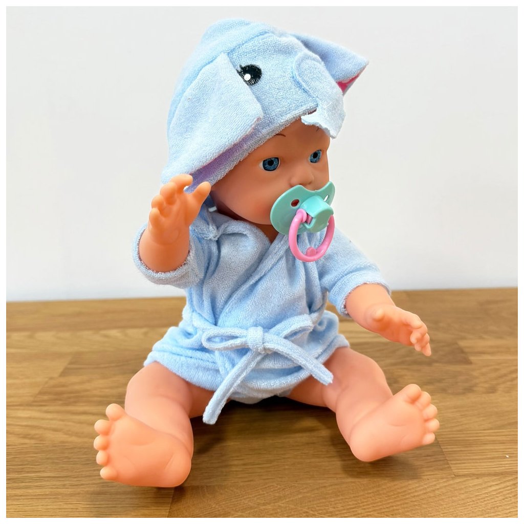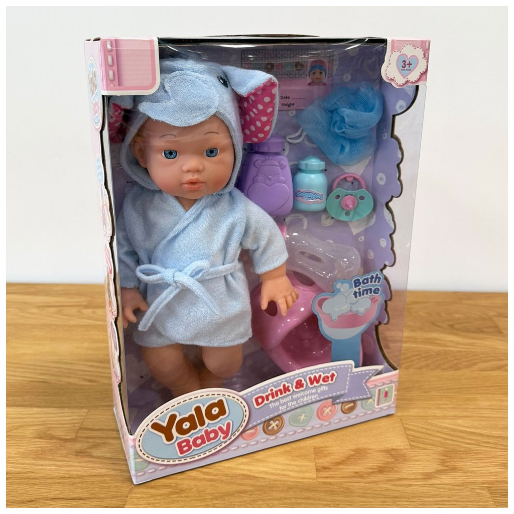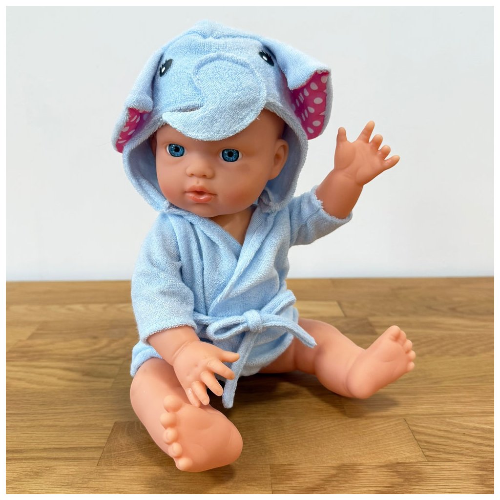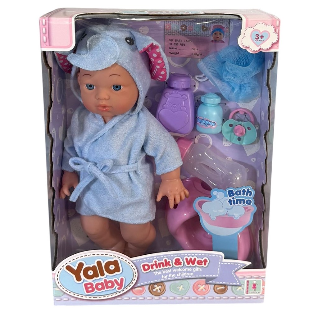 Kúpacia bábika v župane v tvare slona sa stane dokonalým spoločníkom každého malého dievčatka. Pije z fľaše a chodí na nočník. Bábika pije z fľaštičky a ciká. V balení nájdete krásnu bábiku v župane s čiapočkou v tvare slona, nočník, fľaštičku na pitie, cumlík, fľaštičky na mydlo a šampón a kúpaciu žinku.