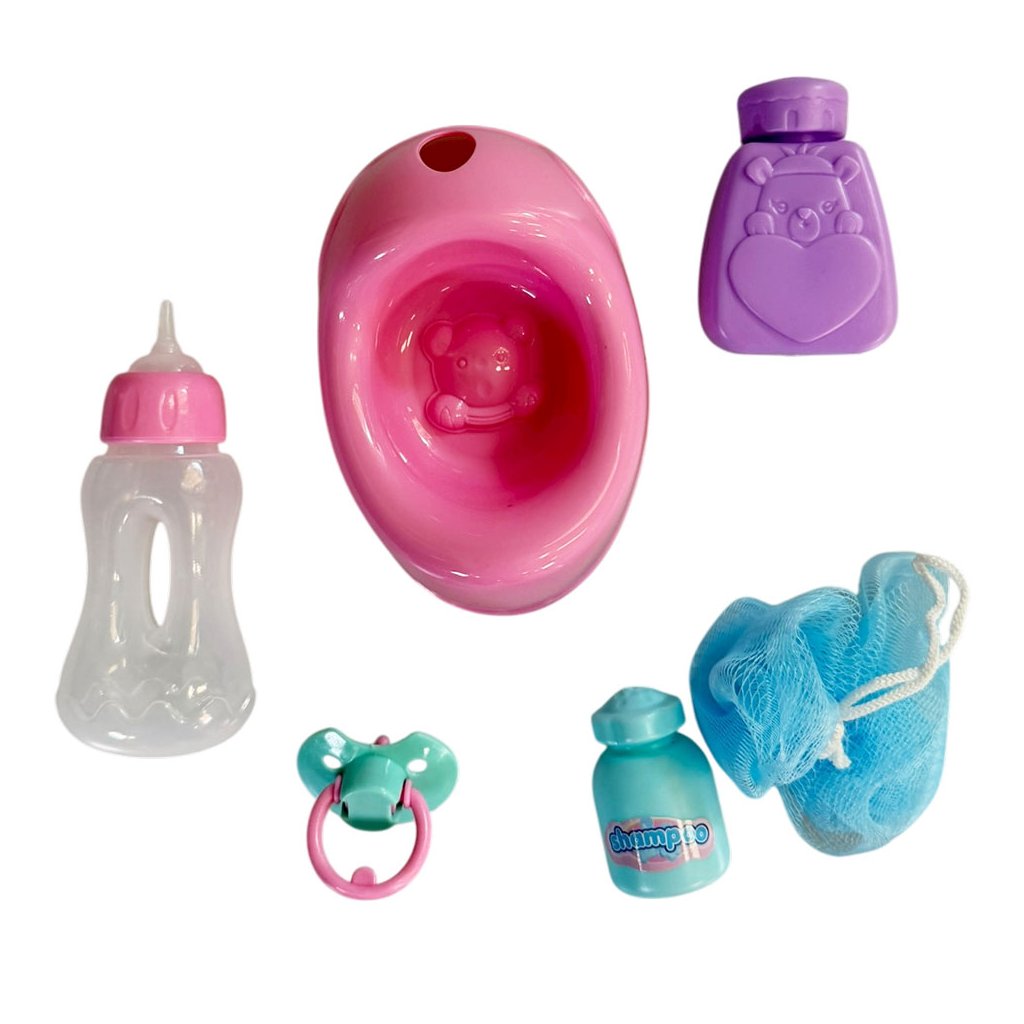 Bábiku je možné kúpať a špeciálne k tomu súprava obsahuje všetky potrebné doplnky. Bábika je veľká 35 centimetrov. V balení nájdete aj kartičku, na ktorú si môžete zapísať meno, dátum narodenia, výšku a váhu bábiky (kartička je v angličtine).