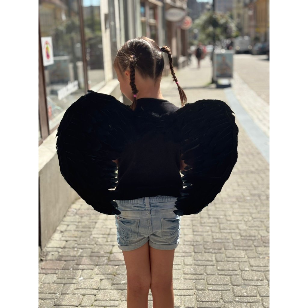 Parádne krídla na karneval v čiernom prevedení. Krídla sú dlhé 60 cm na chrbát sa uchytávajú pomocou naťahovacích gumičiek.