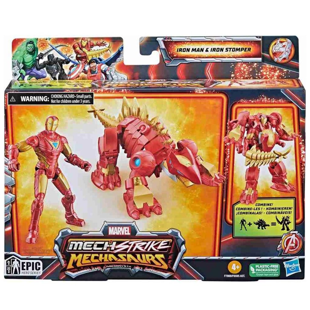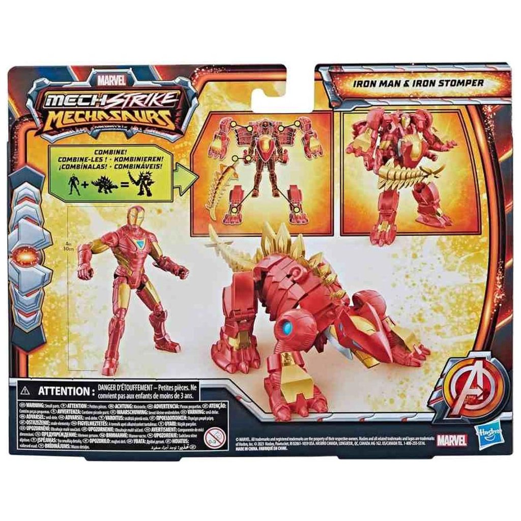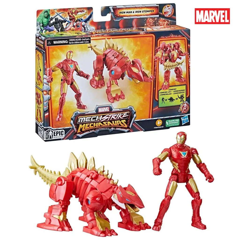 Figúrka Marvel Mech Strike Iron Man + Stomper. Každá 10 cm akčná figúrka Marvel má Mechasaura, ktorého je možné rozobrať a postaviť si obrnený oblek, obsahuje aj odnímateľný blaster s projektilom, pohyblivé končatiny. Akčná figúrka superhrdinu má 9 možností nastavenia, takže deti môžu predstierať, že s ňou bojujú nápaditými spôsobmi.