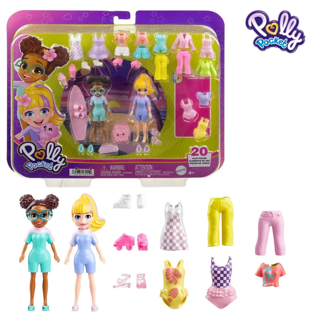 Vitajte vo svete Polly Pocket. Vydajte sa do dobrodružstva s bábikami. V sade nájdete dve bábiky a množstvo oblečku a doplnkov. Tématické sada obsahuje celkom 20 kusov.