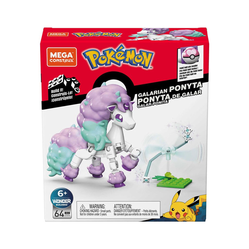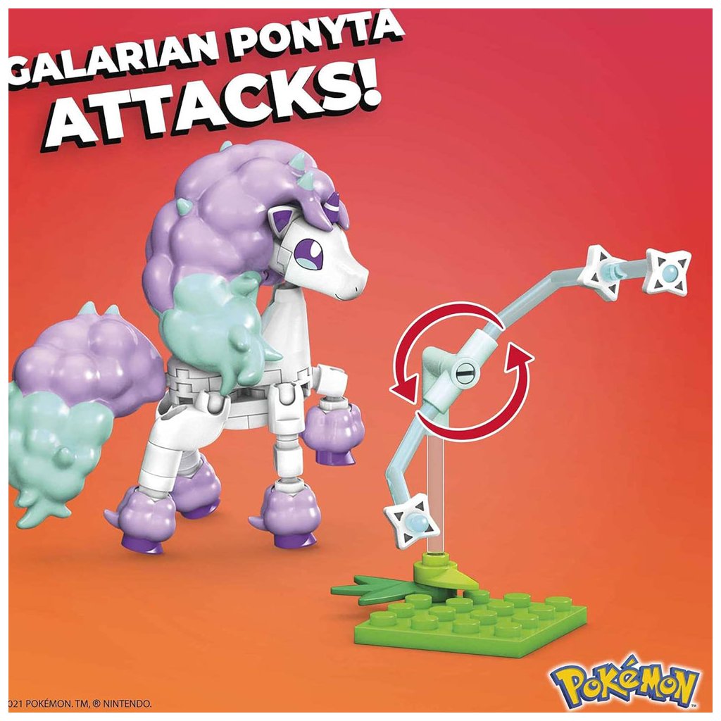 Cval do bitky s touto galarskou formou Ponyty. Postavte si túto stavebnicu Pokémona a postavte postavu typu Psychic v jednej z mnohých bojových pozícií, než uvoľníte jej mocnú schopnosť. Vybudujte Ponytinu bojovú schopnosť ako vedľajšiu stavbu, potom sa postavte späť a oceňte toto majestátne stvorenie, doplnené pestrofarebnou hrivou a chvostom. Ideálne pre staviteľov zázrakov vo veku od 6 rokov.