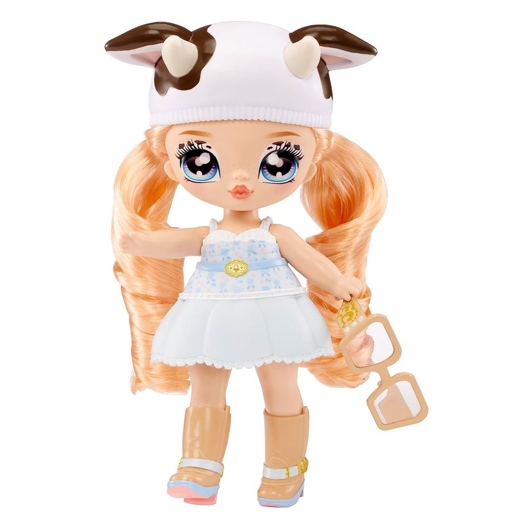 Na!Na!Na! Fuzzy Surprise Cow Girl je jedinečná bábika, ktorá zaujme inovatívnym spôsobom objavovania postáv a doplnkov. Prekvapivá a pôvabná séria Fuzzy Surprise umožňuje deťom objavovať postavy úplne novým spôsobom – každá bábika je pokrytá jedinečnou vločkovanou vrstvou, ktorú je možné jemne zotrieť a odhaliť tak jej štýlový vzhľad a detaily oblečenia. Je to skvelá zábava plná vzrušenia, ideálna pre malých zberateľov a fanúšikov kreatívnej zábavy.