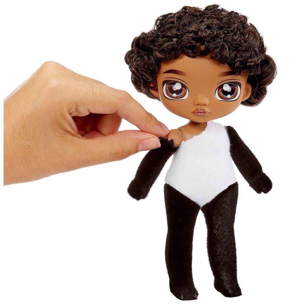 Bábiky zo série Na! Na! Na! Fuzzy Surprise sa vyznačujú oblečením inšpirovaným zvieratami, čo im dodáva jedinečný charakter a priťahuje pozornosť. Bábika - panda meria 17 cm a má vytlačené detaily tváre, vlasy a prepracovaný outfit, ktorý zdôrazňuje jej jedinečný štýl. Odnímateľná, vločkovaná čiapka je ďalším detailom, ktorý dodáva bábike zvláštne kúzlo a robí zábavu pri štylizácii ešte zaujímavejšou. Vďaka pohyblivým bodom na krku, ramenách a bokoch získavajú bábiky flexibilitu a prirodzenosť pohybu, čo deťom umožňuje vytvárať nekonečné scenáre zábavy.