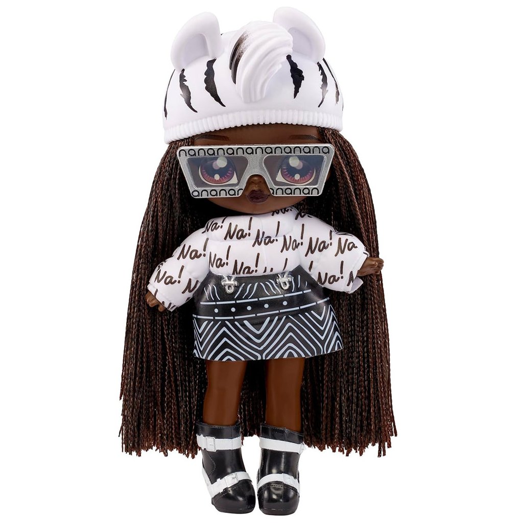 Bábiky zo série Na! Na! Na! Fuzzy Surprise sa vyznačujú oblečením inšpirovaným zvieratami, čo im dodáva jedinečný charakter a priťahuje pozornosť. Bábika meria 17 cm a má vytlačené detaily tváre, vlasy a prepracovaný outfit, ktorý zdôrazňuje jej jedinečný štýl. Odnímateľná čiapka je ďalším detailom, ktorý dodáva bábike zvláštne kúzlo a robí zábavu pri štylizácii ešte zaujímavejšou. Vďaka pohyblivým bodom na krku, ramenách a bokoch získavajú bábiky flexibilitu a prirodzenosť pohybu, čo deťom umožňuje vytvárať nekonečné scenáre zábavy.