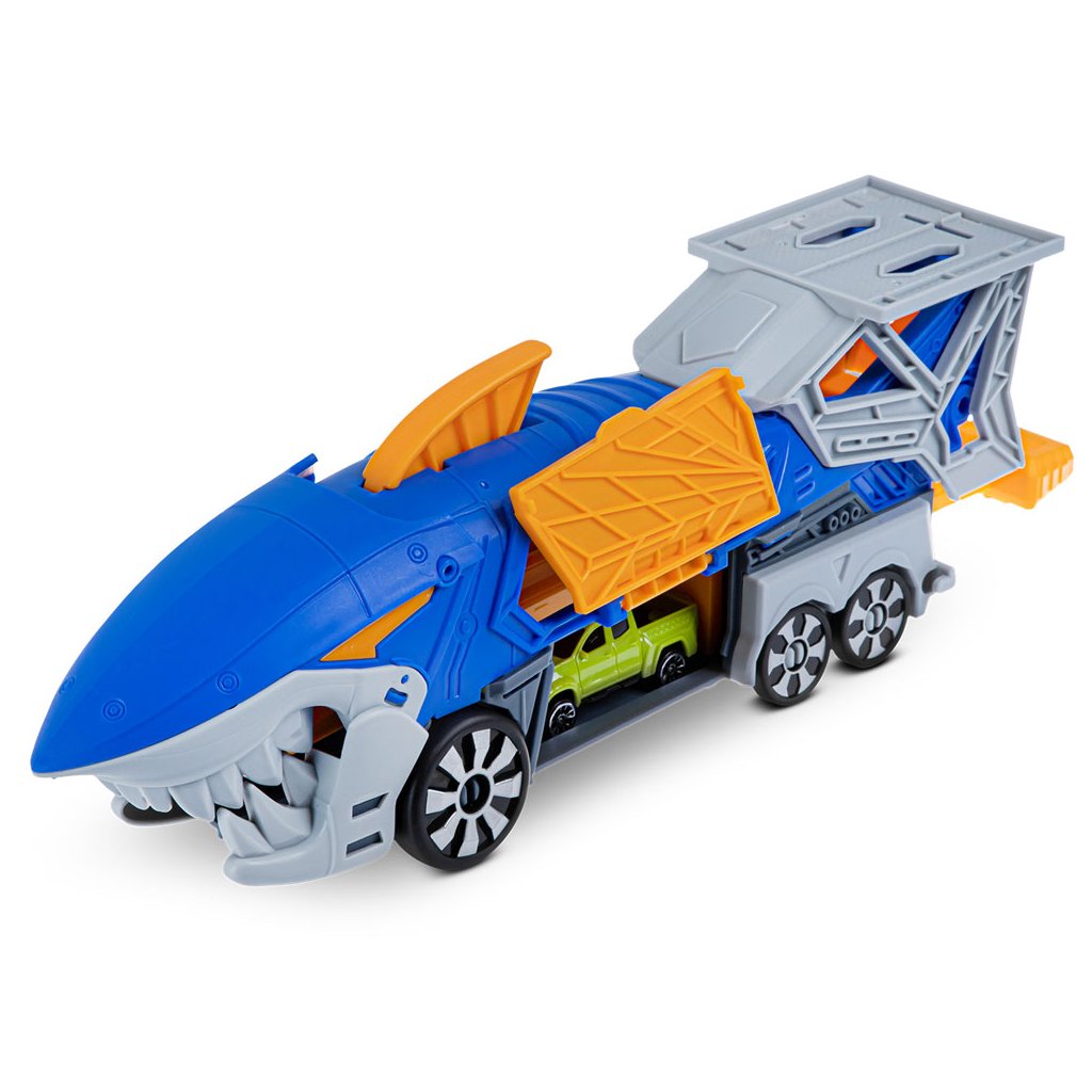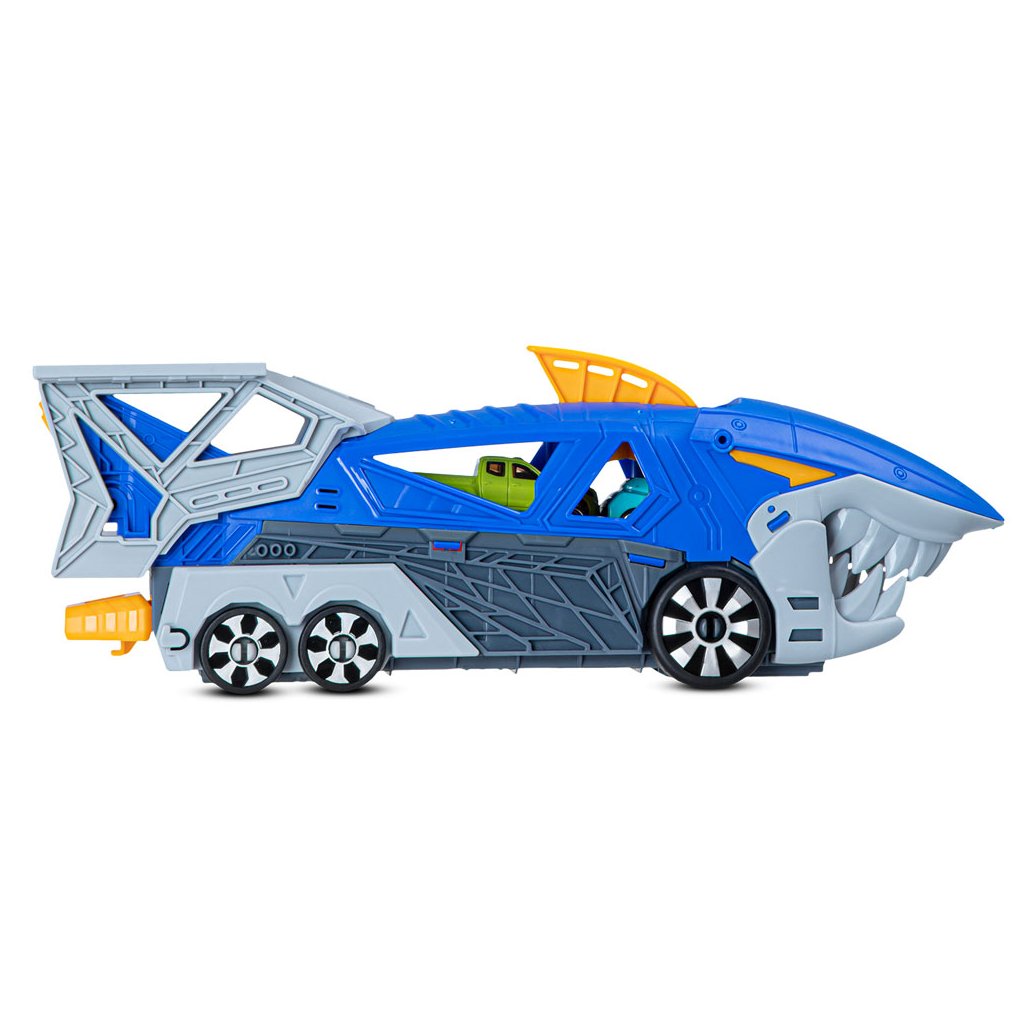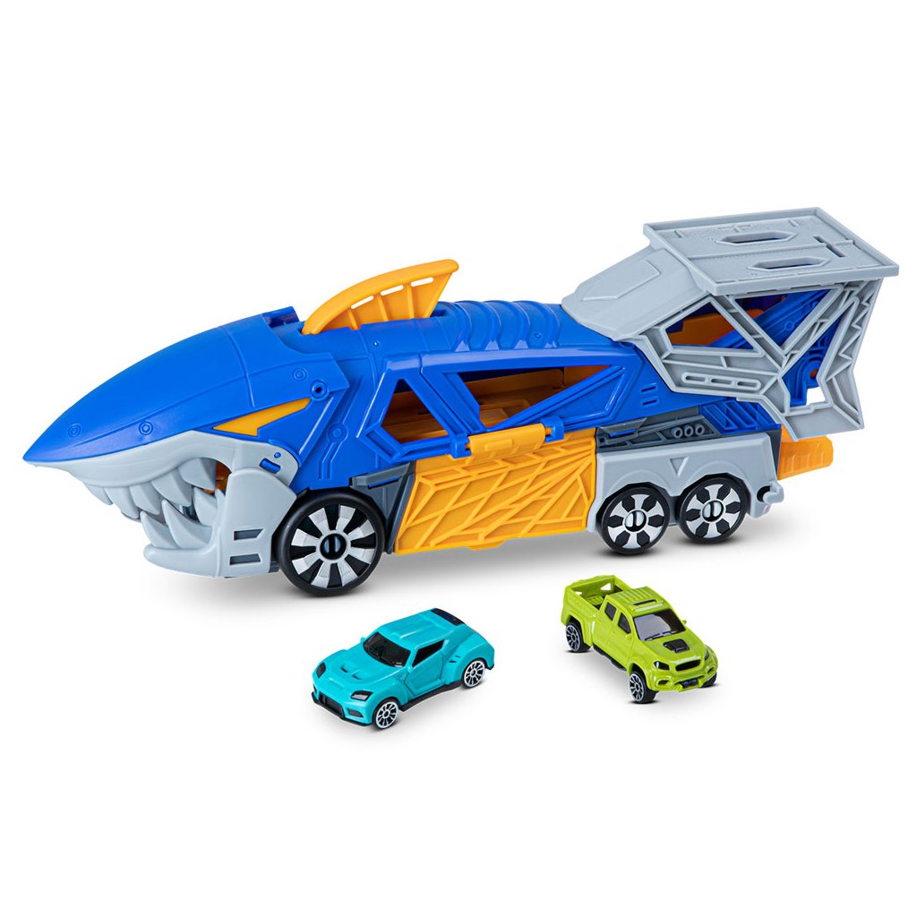 Parádny žraločí nákladiak s vystreľovačom a dvoma autíčkami.Nákladiak je vybavený radom prvkov pre vytváranie napínavých herných scenárov a sada obsahuje aj 2 malé autá.