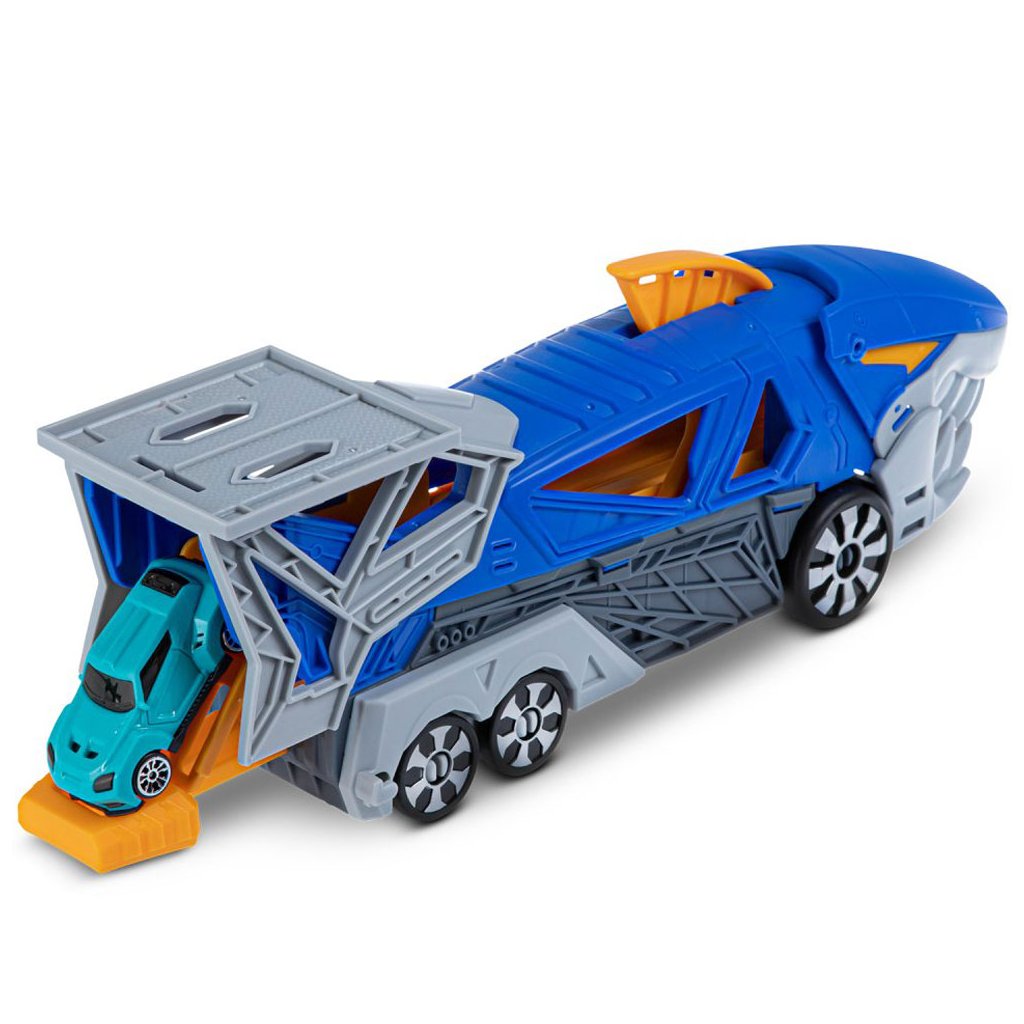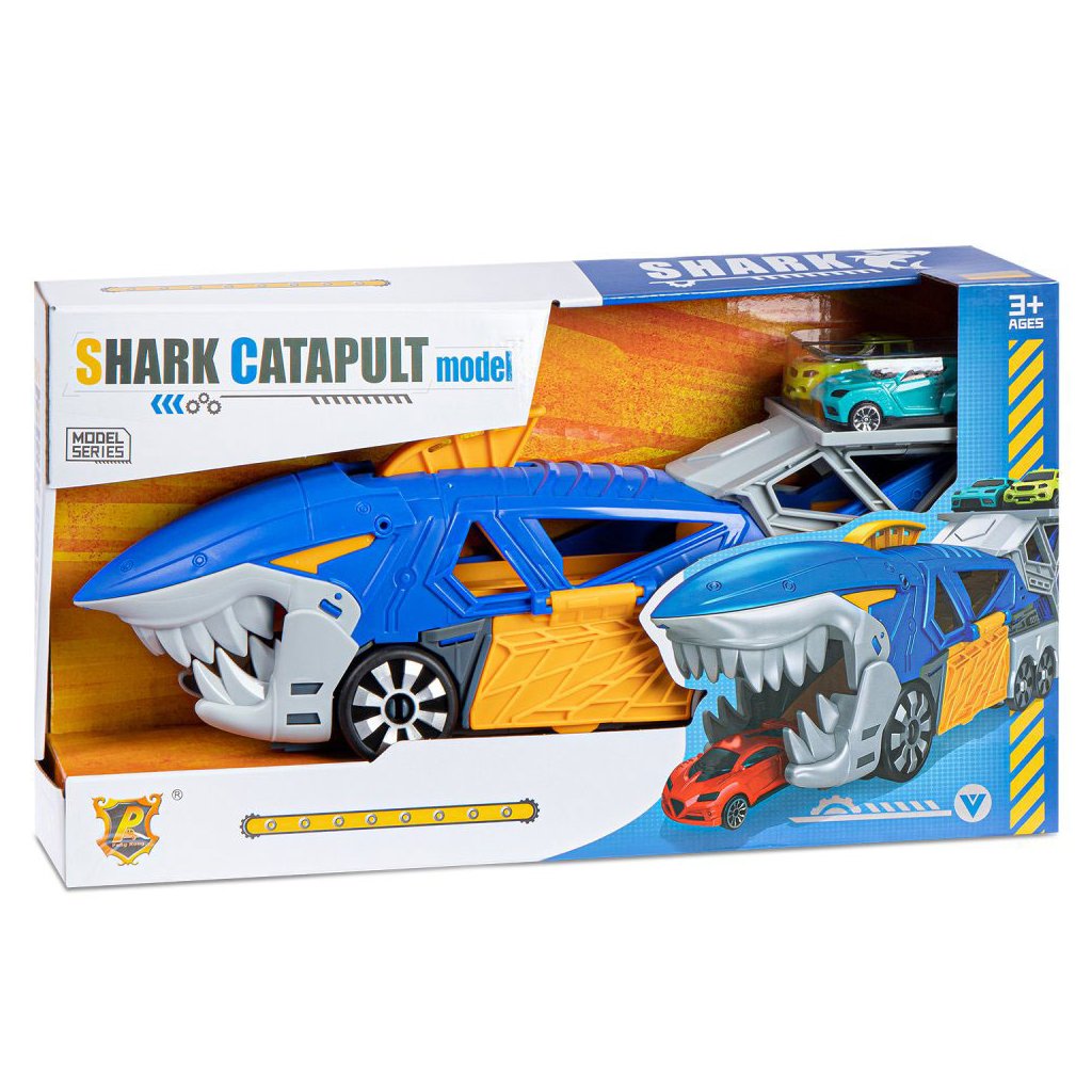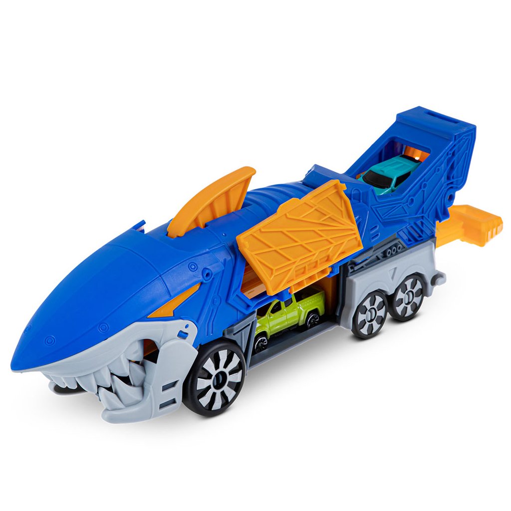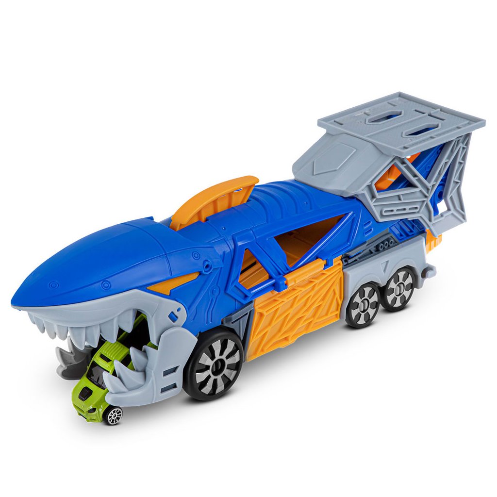 Parádny žraločí nákladiak s vystreľovačom a dvoma autíčkami.Nákladiak je vybavený radom prvkov pre vytváranie napínavých herných scenárov a sada obsahuje aj 2 malé autá.