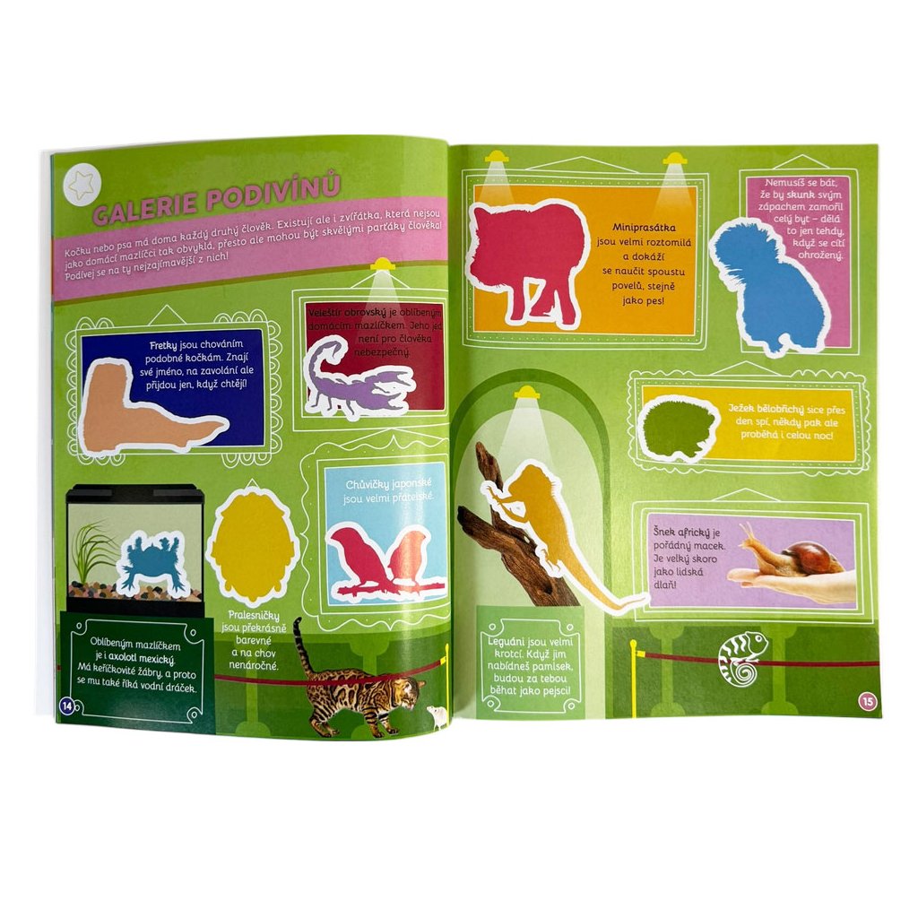 Titul obsahuje 16 tematických stran a více než 120 barevných samolepek k dolepení a ozdobení podle zadání. Dítě se zábavnou formou učí, prohlubuje své znalosti a procvičuje si paměť.