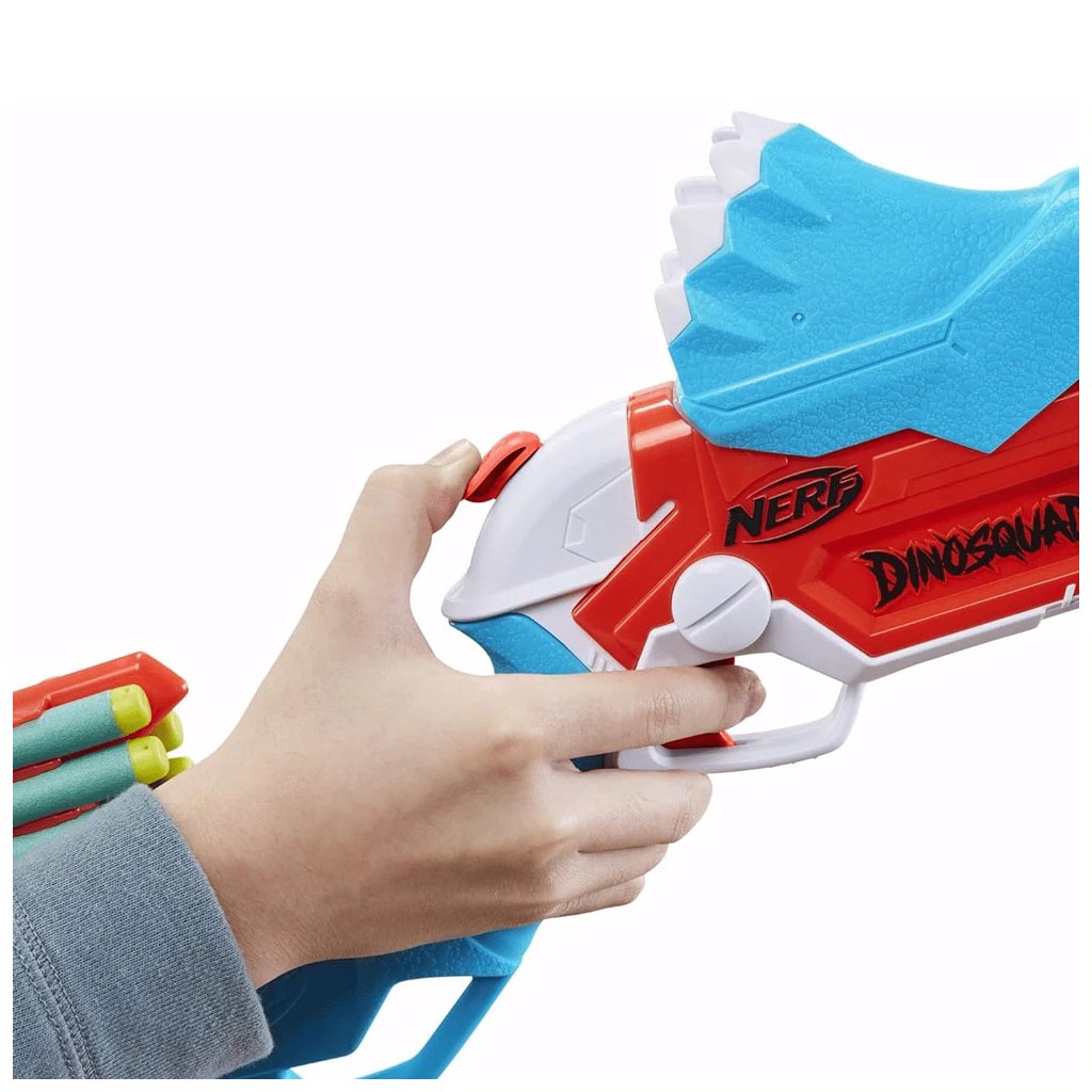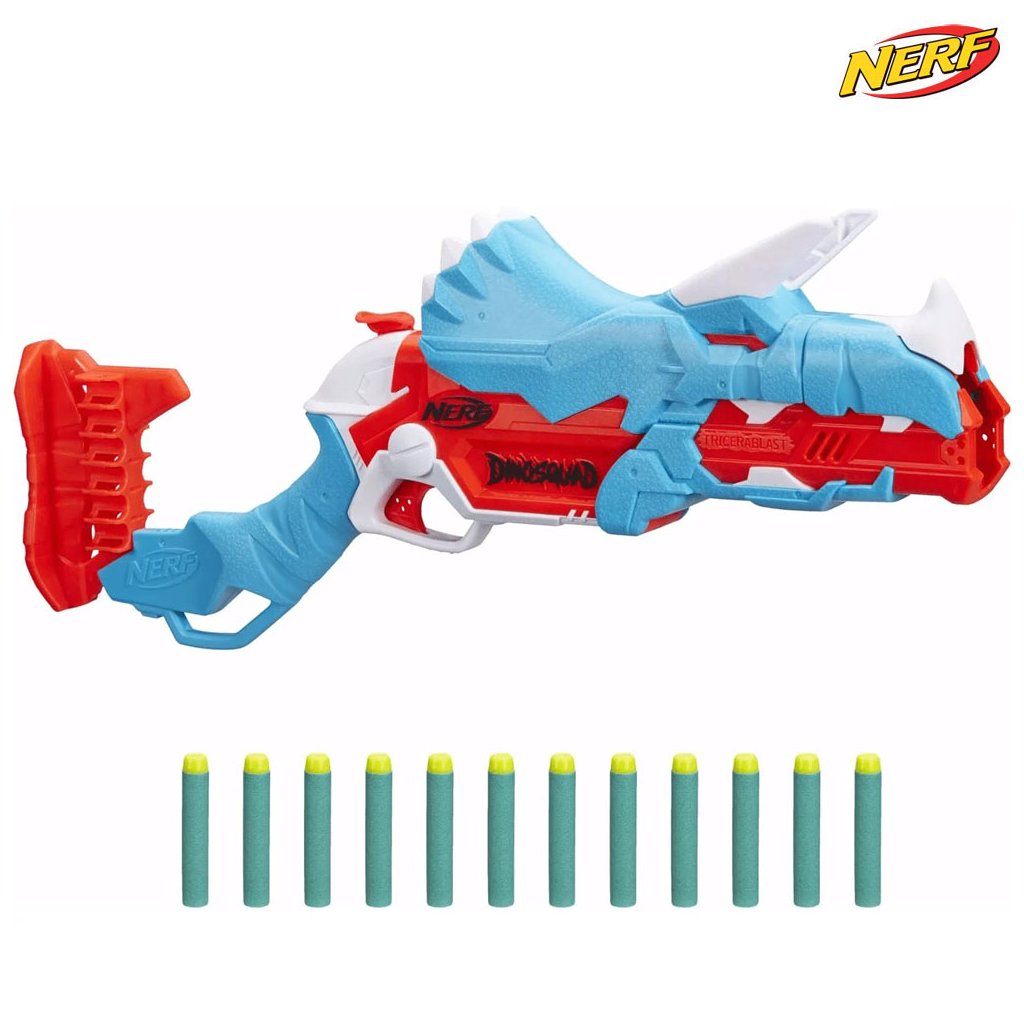 Vrhni sa do boja s týmto Tricerablast 3-šípkovým blasterom! Bláster vyzerá ako Triceratops! Bláster má veľmi efektný spôsob dobíjania na 3 šípky. Stlač kohútik a vystrel šípku. Na pažbe blasteru je záložné úložisko až na 12 šípok pre rýchle dobíjanie. Balenie obsahuje 12 Official Nerf Elite penových šípok.