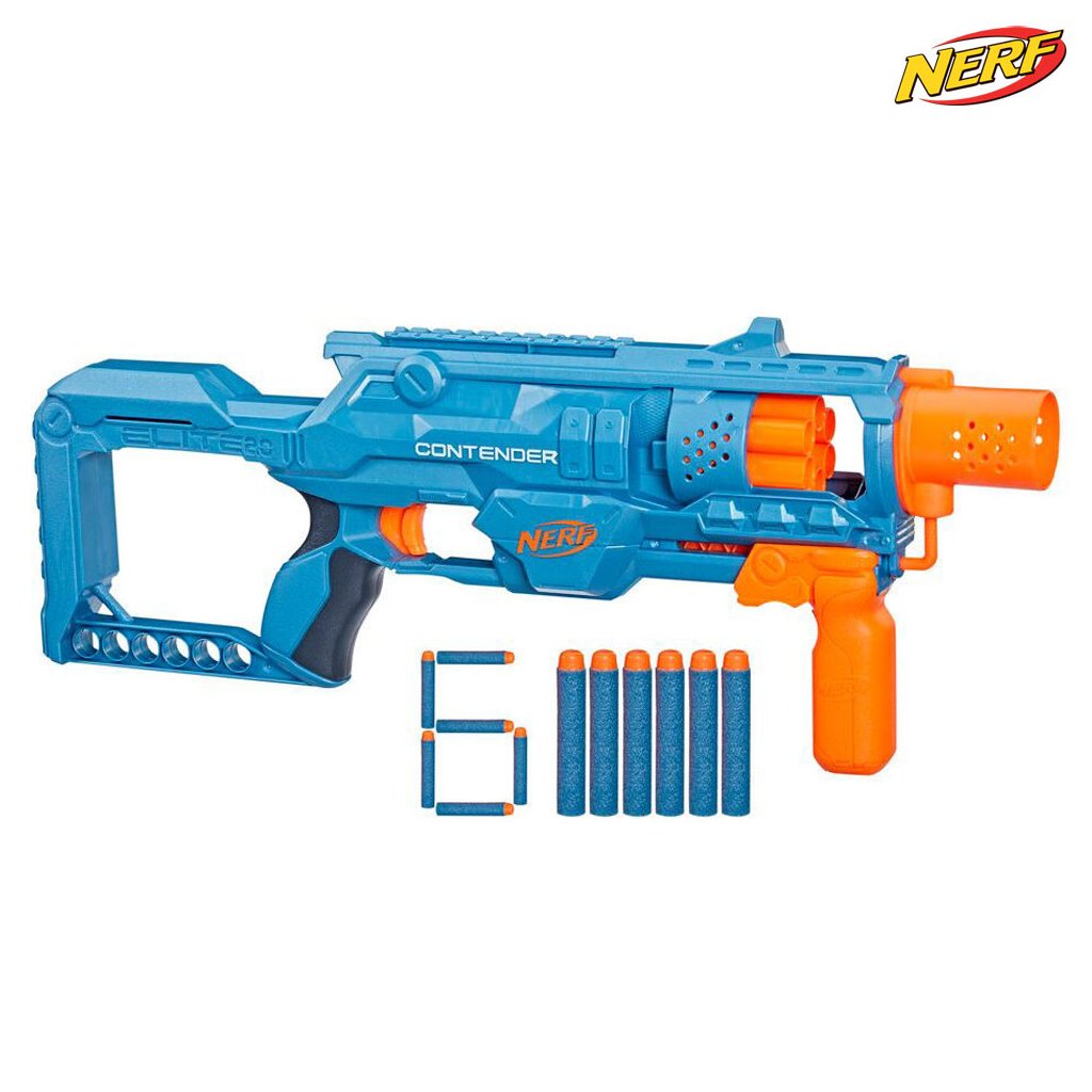 S blasterom Nerf Elite 2.0 Contender môžete vyhrať! Tento Nerf blaster má bubon so 6 šípkami, ktoré sa streľajú po jednom pri energických vonkajších hrách pre deti. Tento záhradný blaster sa dodáva so 6 Nerf Elite šípkami na naplnenie bubna. Blaster sa nabíja pomocou rukoväte, ktorá pomáha stabilizovať mierenie počas Nerf bitiek.
