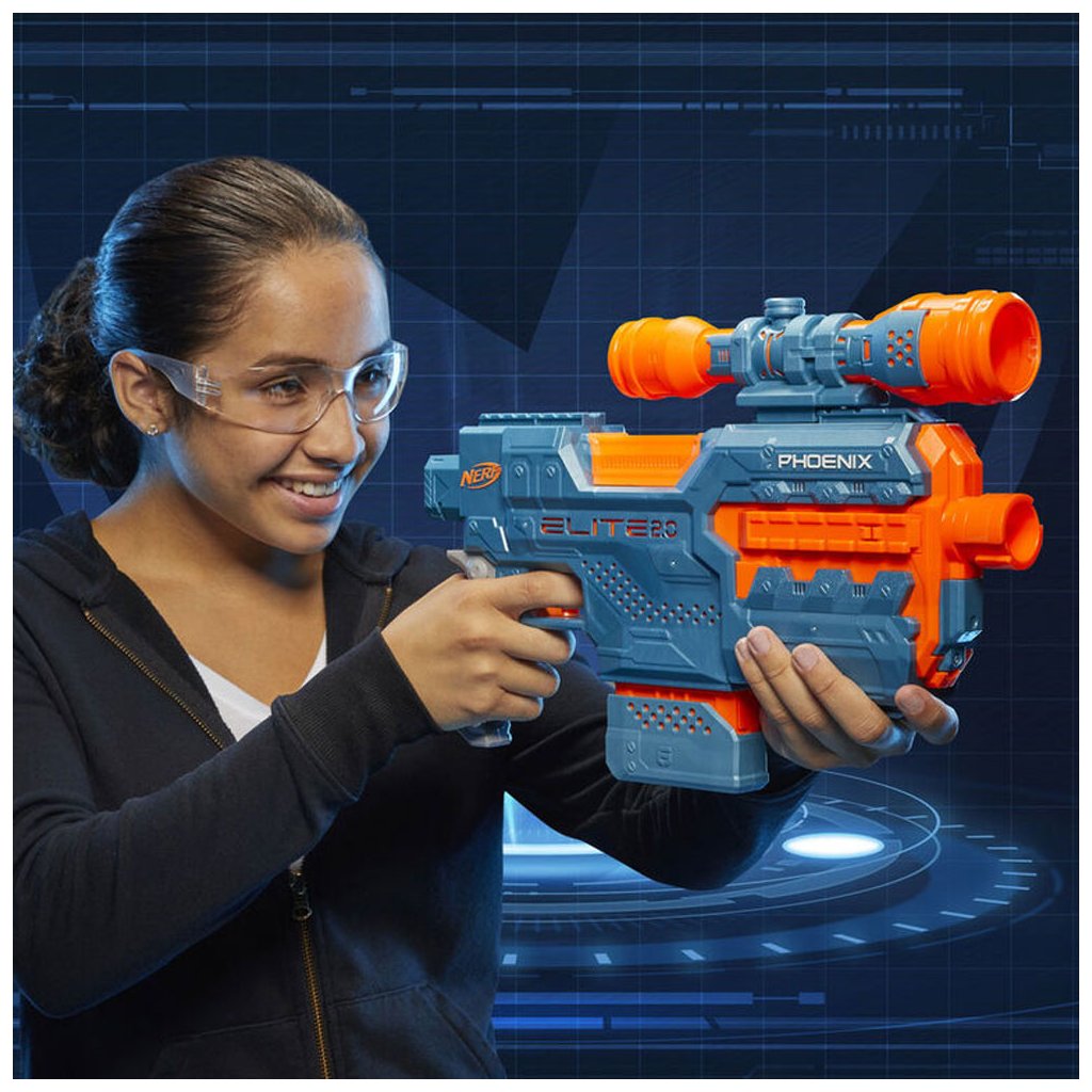 Motorizovaný blaster Nerf Elite 2.0 Phoenix CS-6 má 5 taktických kolejnic, upevňovací bod pažby a upevňovací bod hlavně, takže si jej můžete přizpůsobit pro každou misi nebo bitvu.