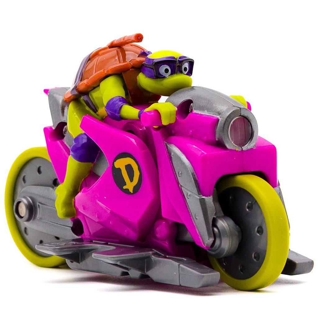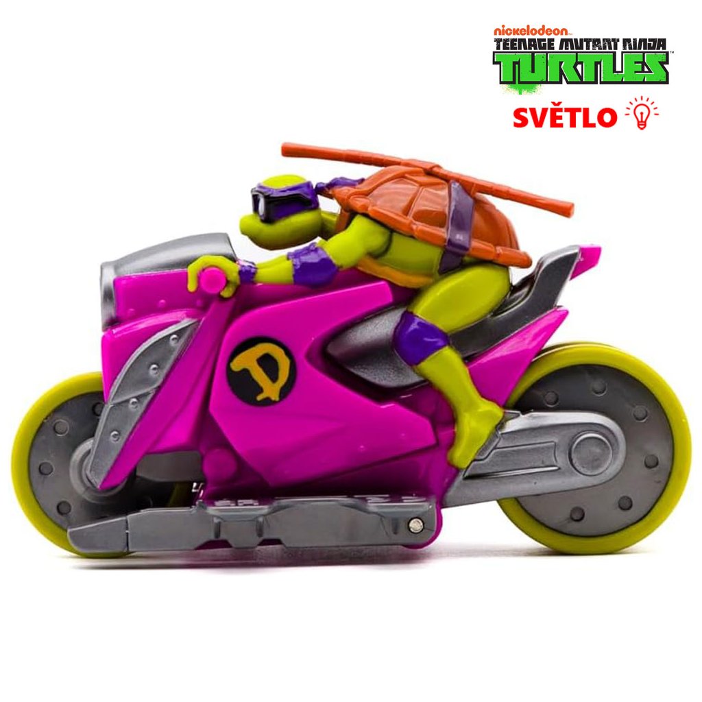 Ninja Korytnačky prinášajú motorky s figúrkou na zotrvačník. Po stlačení tlačidla motorke svieti svetlo. Navyše má systém click. Jednoducho zacvaknite rameno motocykla do správnej polohy a rozbehnite ho. Uvoľnite a sledujte, ako jazdec predvádza salto vzad priamo pred vašimi očami!