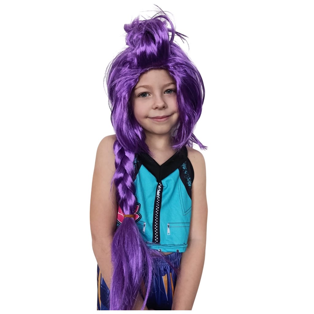 Jedinečnosť, kvalita a nezabudnuteľný štýl. Krásna fialová parochňa s dlhým vrkôčikom. Parochňa od hlavy po koniec vrkoča meria 90 centimetrov.Parochňa je vyrobená z umelých vlasov najvyššej kvality, ktoré vyzerajú rovnako prirodzene ako pravé vlasy. Jej strih je presne taký, aký poznáte zo seriálu.