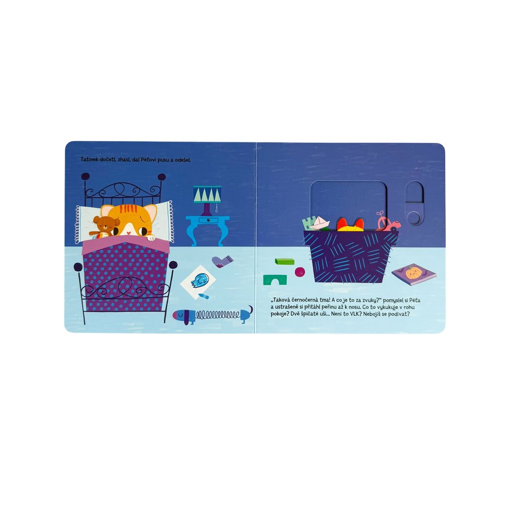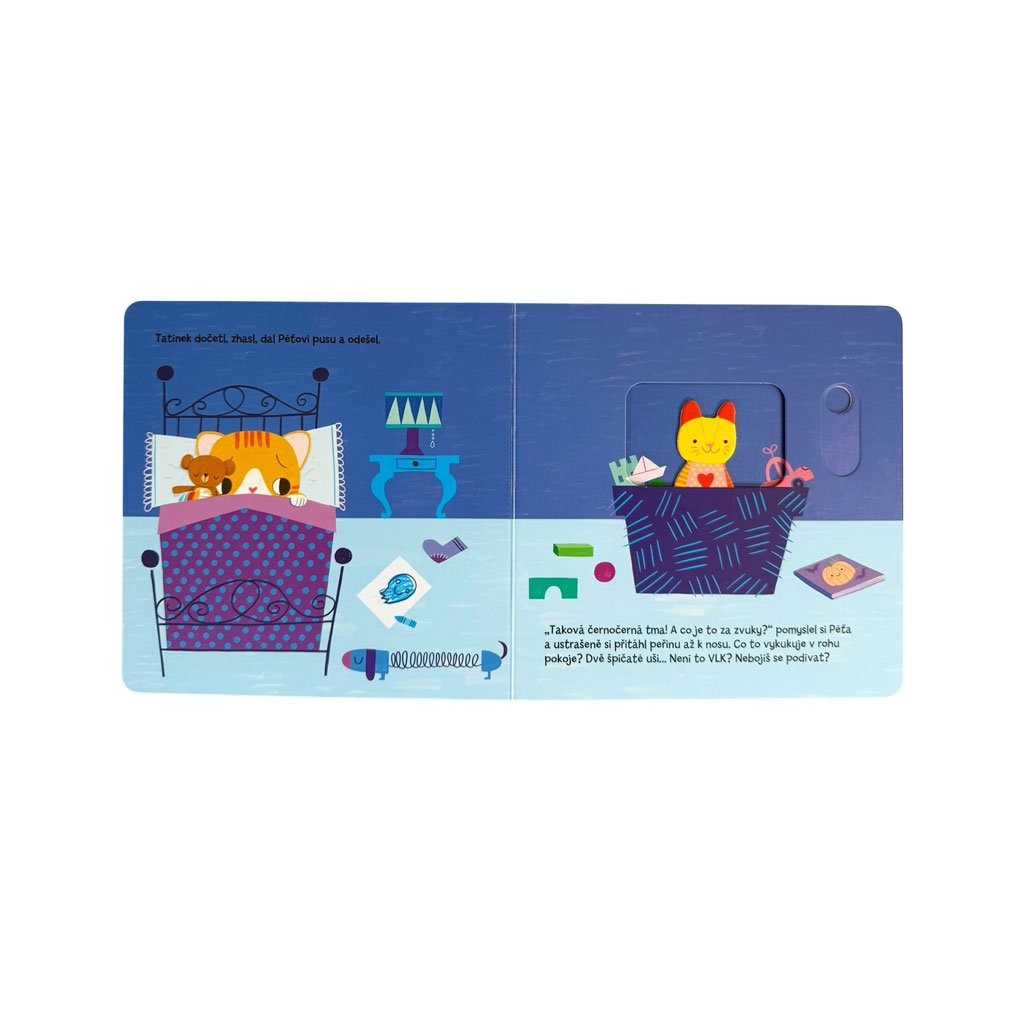Péťa zívl únavou. Je čas jít spát. Tatínek mu přečetl pohádku na dobrou noc a zhasl světlo. Ale Péťa se bojí.Vždyť všude kolem je úplně černá tma… Tohle interaktivní leporelo pomůže dětem překonat strach ze tmy. Roztomilý příběh s důležitým tématem ze života dítěte doprovázejí otevírací okénka a posuvné a otočné prvky.