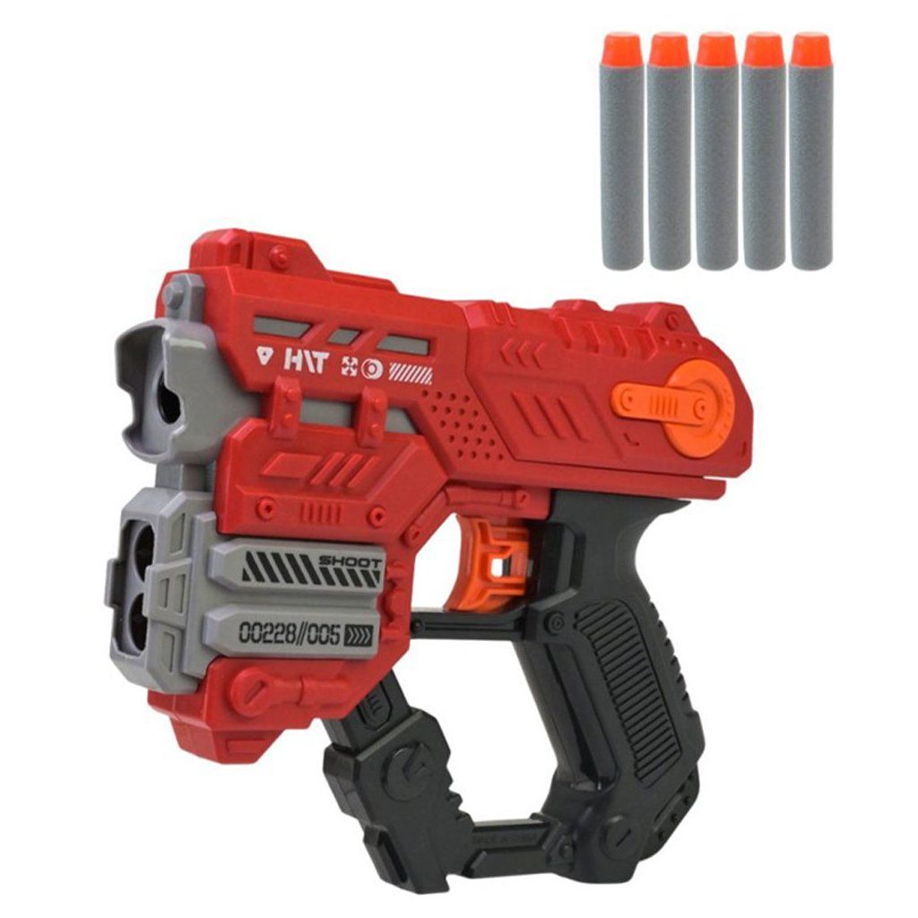 Detská pištoľ na penové náboje. Spolu s pištoľou dostanete aj 5 nábojov.