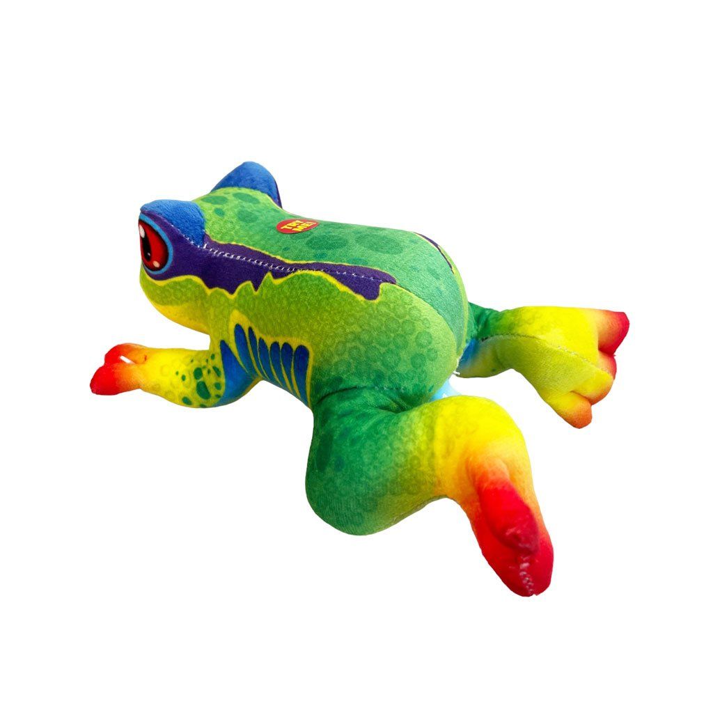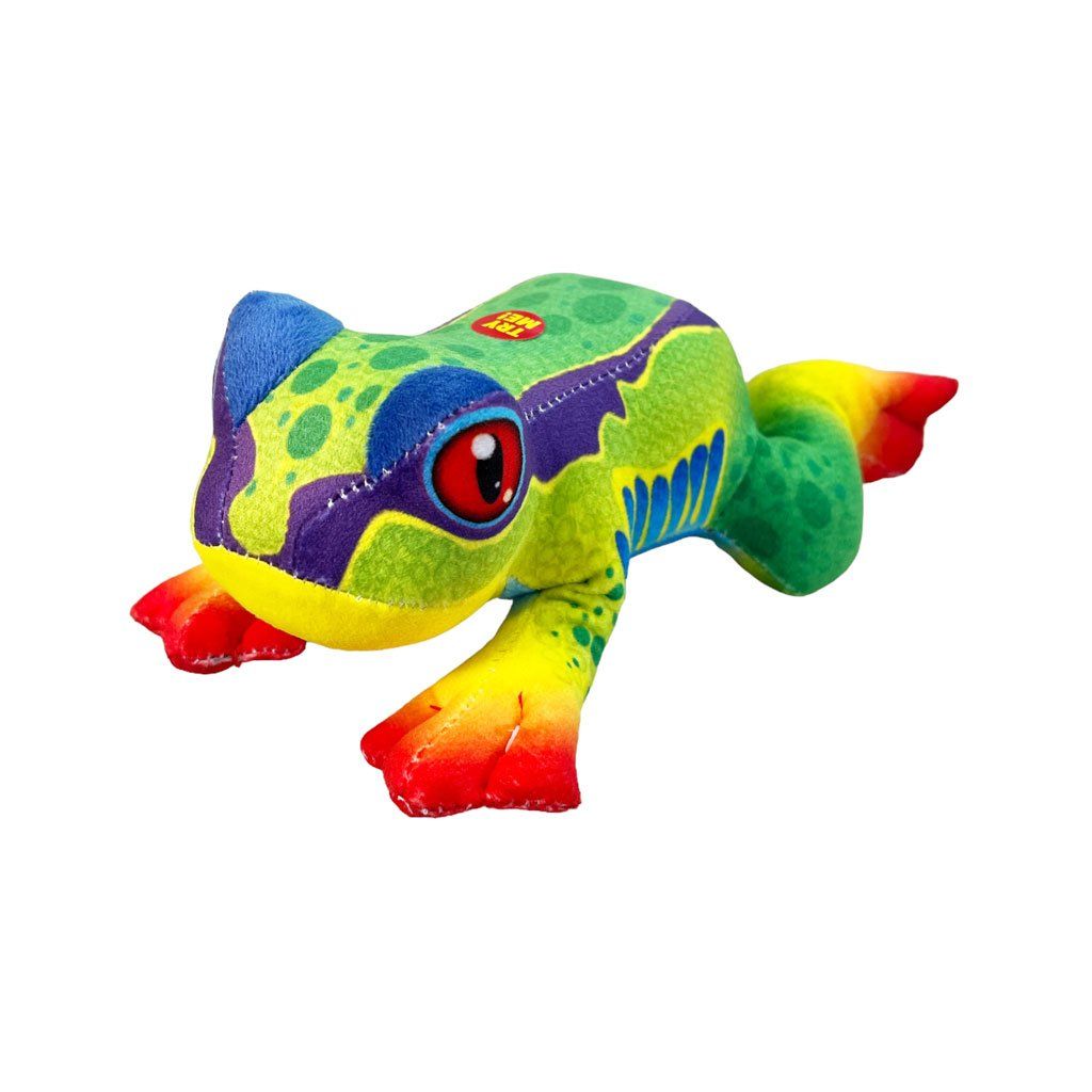 Plyšová žaba o veľkosti 20 cm je vybavená zvukovými efektmi fungujúcimi na batérie. Produkt je dostupný v 4 rôznych farebných prevedeniach. Mäkký materiál a zábavné zvuky z nej robia perfektného kamaráta pre hru aj maznanie. Vhodná pre deti už od narodenia.