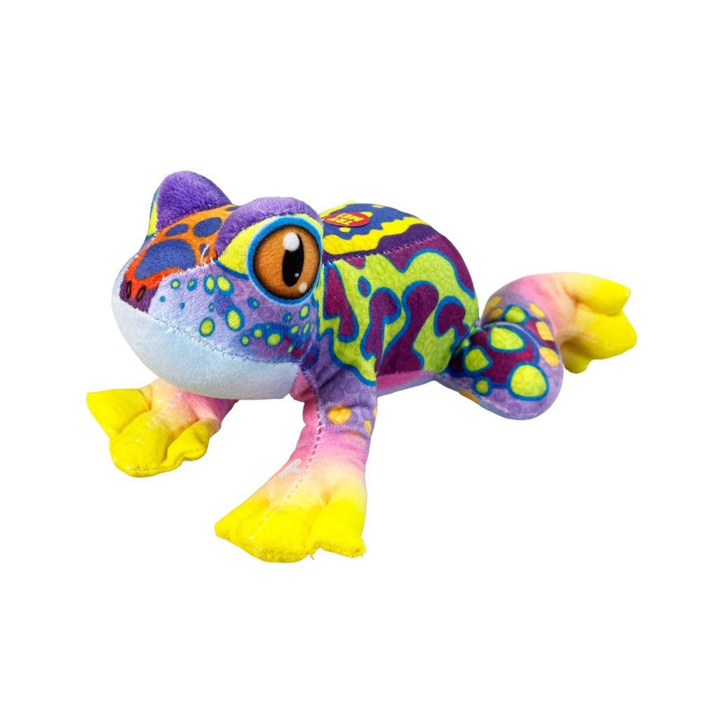 Plyšová žaba o veľkosti 20 cm je vybavená zvukovými efektmi fungujúcimi na batérie. Produkt je dostupný v 4 rôznych farebných prevedeniach. Mäkký materiál a zábavné zvuky z nej robia perfektného kamaráta pre hru aj maznanie. Vhodná pre deti už od narodenia.