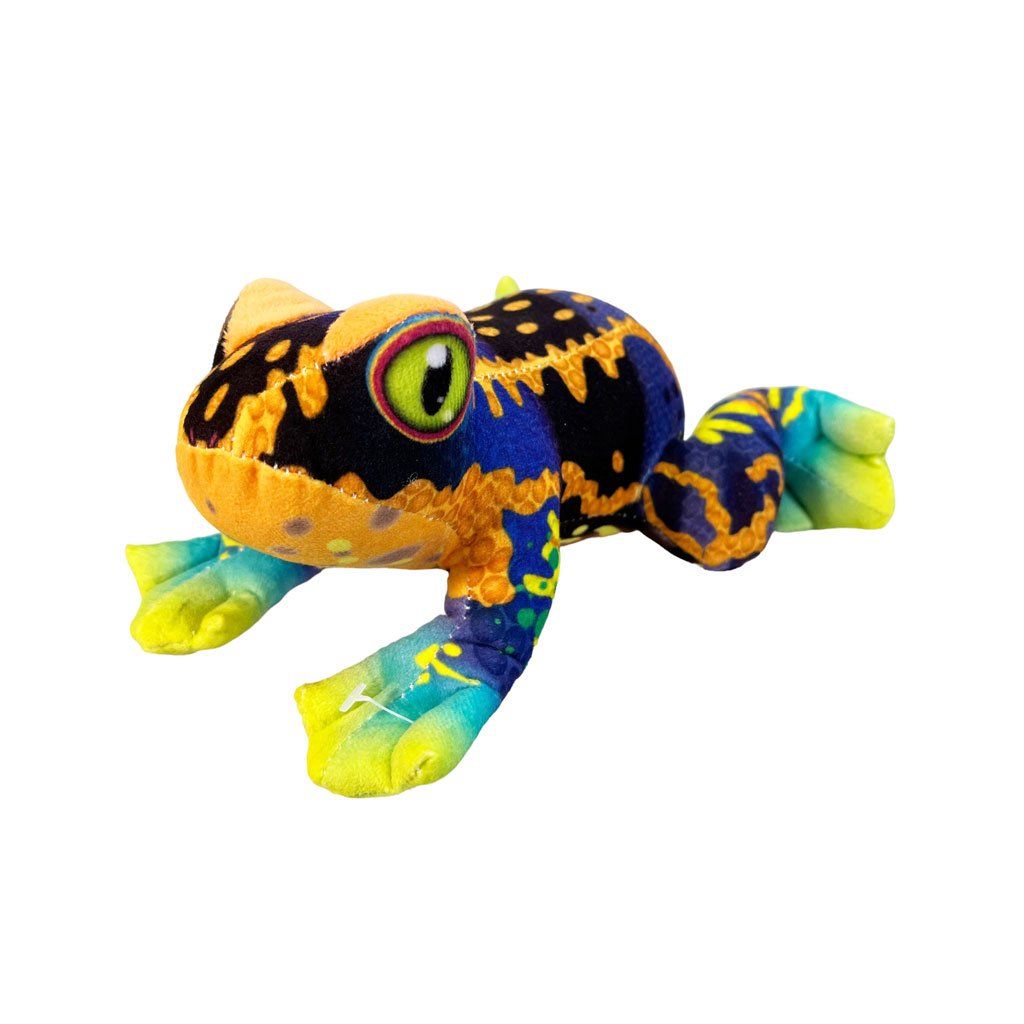 Plyšová žaba o veľkosti 20 cm je vybavená zvukovými efektmi fungujúcimi na batérie. Produkt je dostupný v 4 rôznych farebných prevedeniach. Mäkký materiál a zábavné zvuky z nej robia perfektného kamaráta pre hru aj maznanie. Vhodná pre deti už od narodenia.