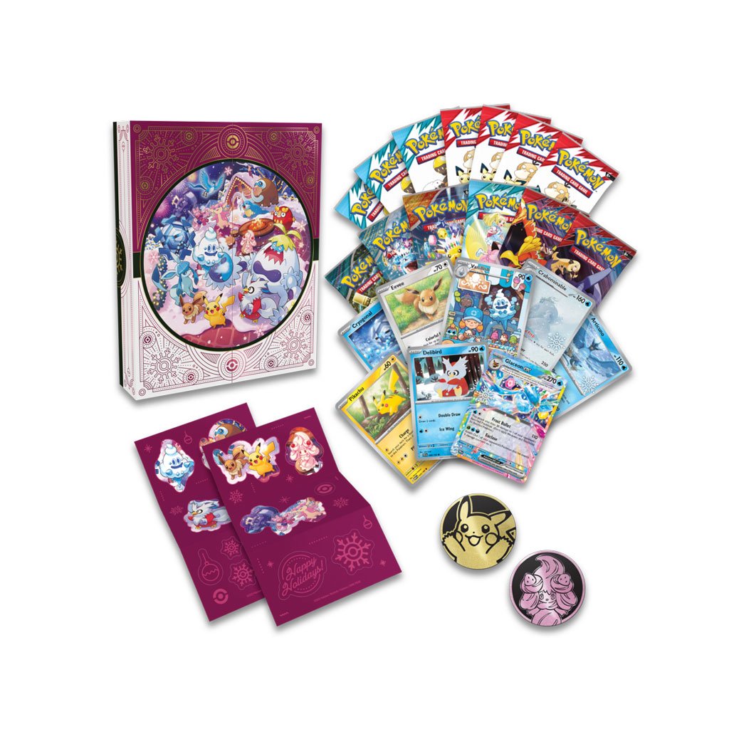 Pokémon TCG: Sviatočný kalendár je skutočnou lahôdkou pre zberateľov a fanúšikov mimoriadneho sveta Pokémonov! Táto sada je perfektným darčekom, adventným kalendárom alebo praktickým spôsobom, ako rozšíriť svoju zbierku tovaru s roztomilými tvormi!