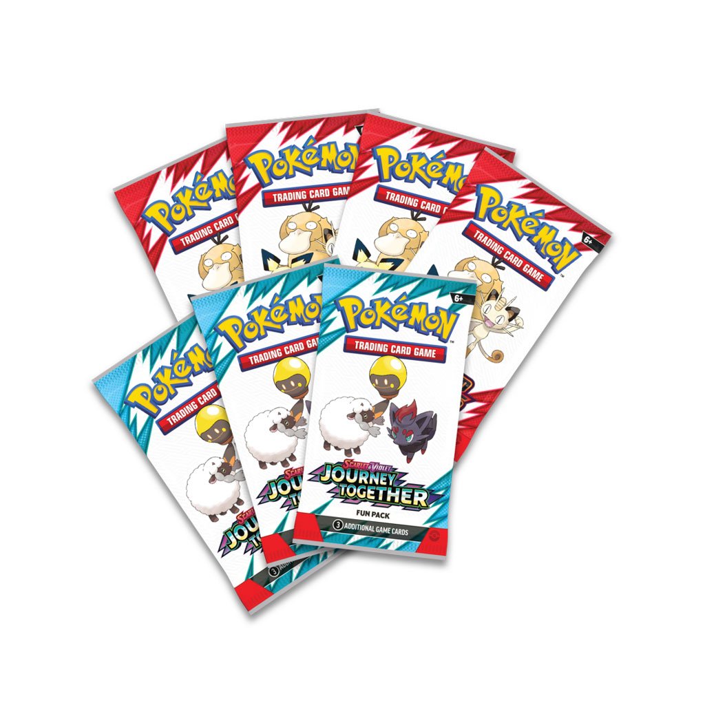 - 7 zábavných balíčkov Pokémon TCG, každý s 3 náhodnými kartami