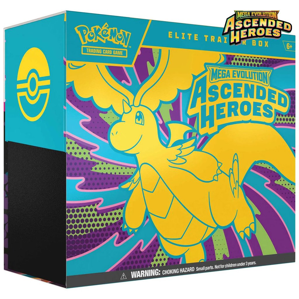 Elite Trainer Box Ascended Heroes je balenie 9 balíčkov Pokémon kariet, 1 promo karty N's Zekrom, 65 obalov, 6 kociek a oddeľovačov. Každý balíček obsahuje 10 kariet. Celkovo tak získate 90 Pokémon kariet.