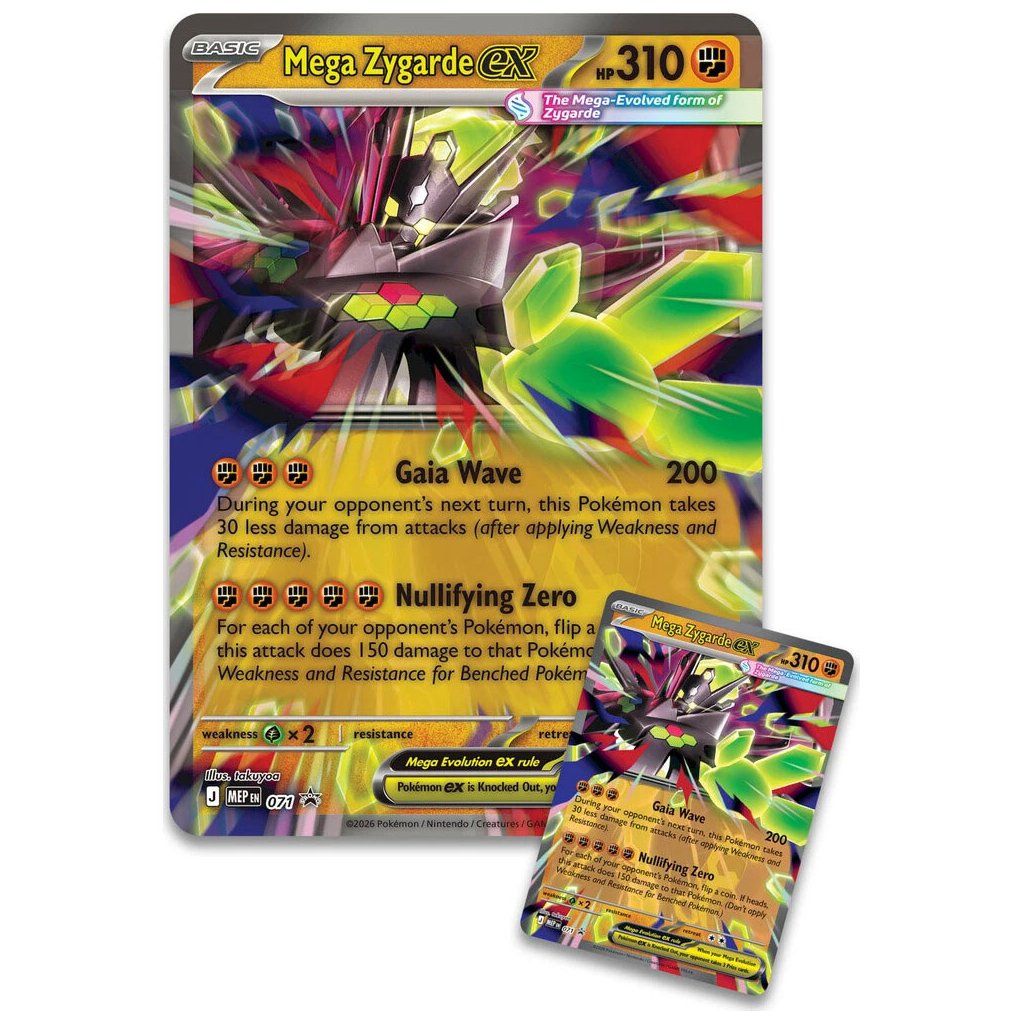 Mega Zygarde ex prináša do hry vysoký herný potenciál a silné útoky, ktoré dokážu výrazne narušiť stratégiu súpera a získať výhodu v súbojoch. Foil prevedenie dodáva karte atraktívny vzhľad, ktorý ocenia nielen hráči, ale aj zberatelia. Súčasťou balenia je 8 booster balíčkov Pokémon TCG, ktoré obsahujú náhodné karty z rôznych edícií, takže každé otvorenie prináša napätie a šancu získať vzácne kúsky. Vďaka tomu ľahko rozšírite svoju zbierku aj herný balíček o nových Pokémonov, trénerov a špeciálne karty.