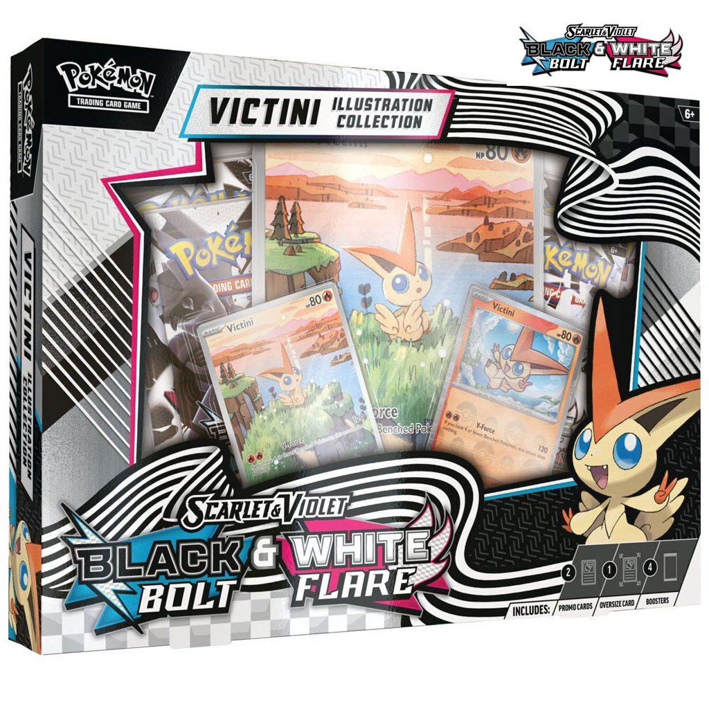 Edícia Scarlet & Violet—Black Bolt a Scarlet & Violet—White Flare spoločne tvorí ucelenú expanziu, ktorá sa zameriava na všetkých 156 Pokémonov pôvodne objavených v regióne Unova. Tieto sady oslavujú tému jednoty a legiend a prinášajú do hry mocných Pokémonov ex, ako je Serperior ex, Zekrom ex a Meloetta ex. Okrem mnohých bežných kariet tu nájdete aj viac ako 65 Illustration Rare kariet a viac ako 5 Special Illustration Rare kariet, ktoré zaručujú nádherné umelecké diela a robia každú kartu zberateľským pokladom. Môžete sa tiež tešiť na unikátne paralelné karty so vzormi Poké Ballov!