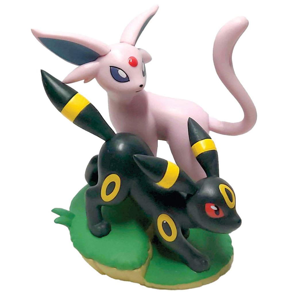 Umbreon a Espeon sú dve vývojové formy Eevee.Umbreon je temný typ, ktorý sa vyvíja v noci. Má elegantnú čiernu srsť so žltými krúžkami a je známy svojou výdržou a obranným štýlom boja.Espeón je psychický typ, ktorý sa vyvíja cez deň. Má elegantnú fialovú srsť a schopnosť predvídať útoky pomocou svojej psychickej sily. Obaja sú obľúbení pre svoju krásu aj silu.