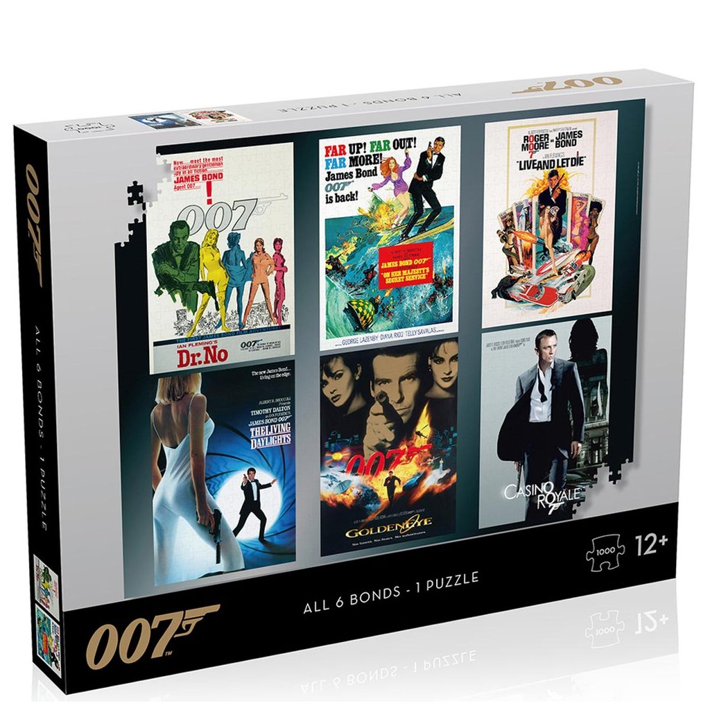 Fanúšikovia puzzle pre priaznivcov britského agenta Jamesa Bonda. Znovu zažite slávnu kariéru 007. Motív sa skladá zo 6 klasických filmových plagátov hereckých debutov predstaviteľov Bonda.